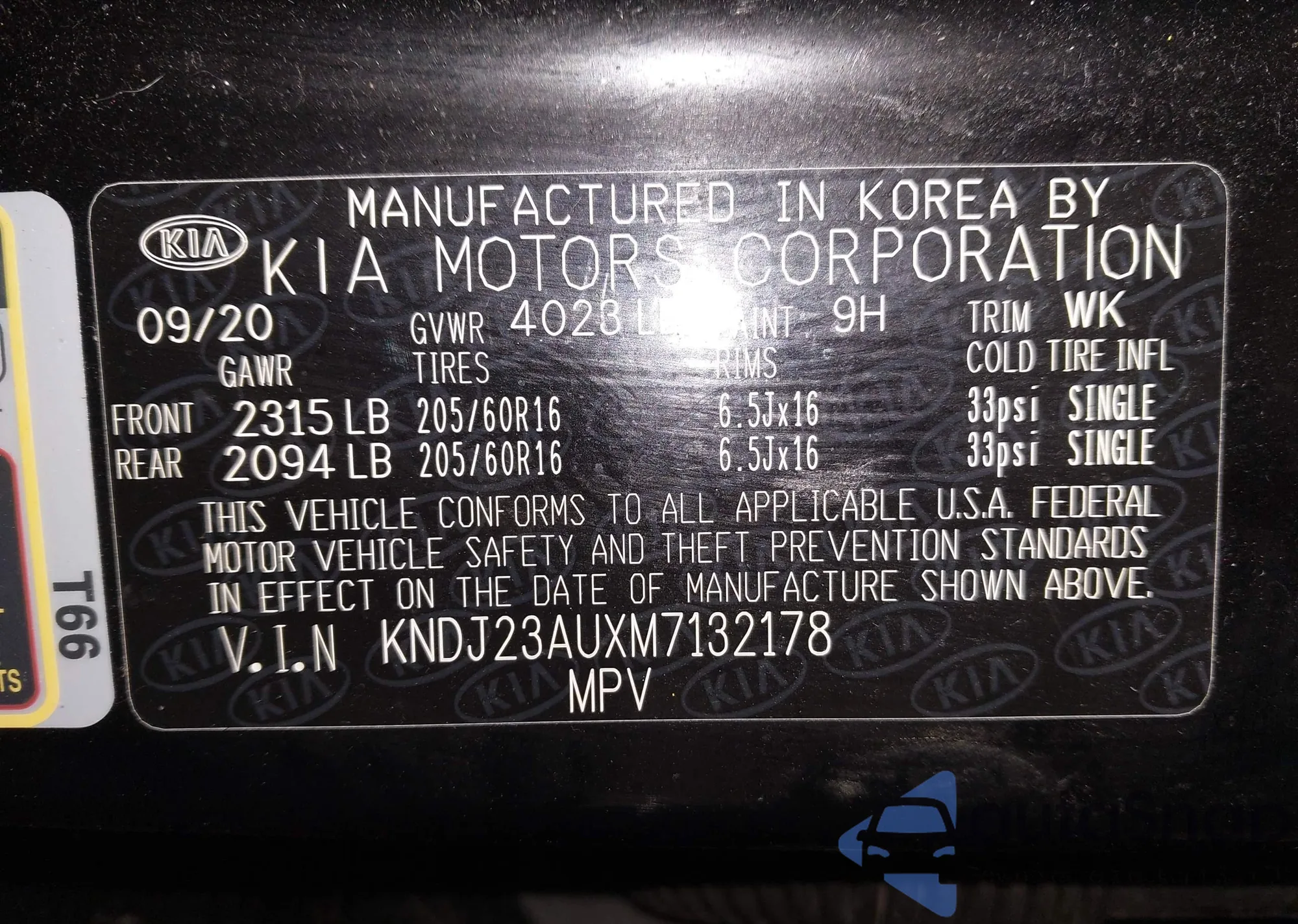 • VIN KNDJ23AUXM7132178