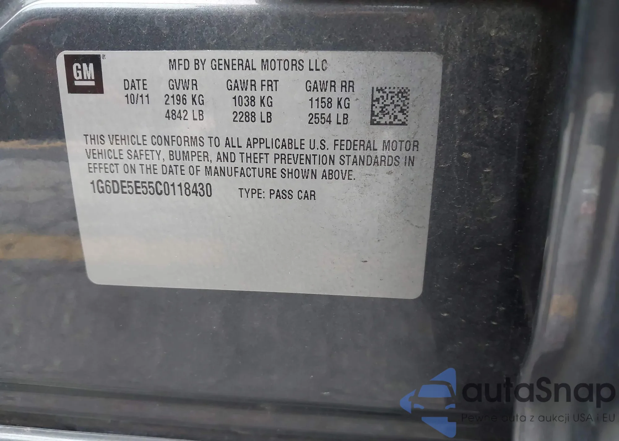 • VIN 1G6DE5E55C0118430