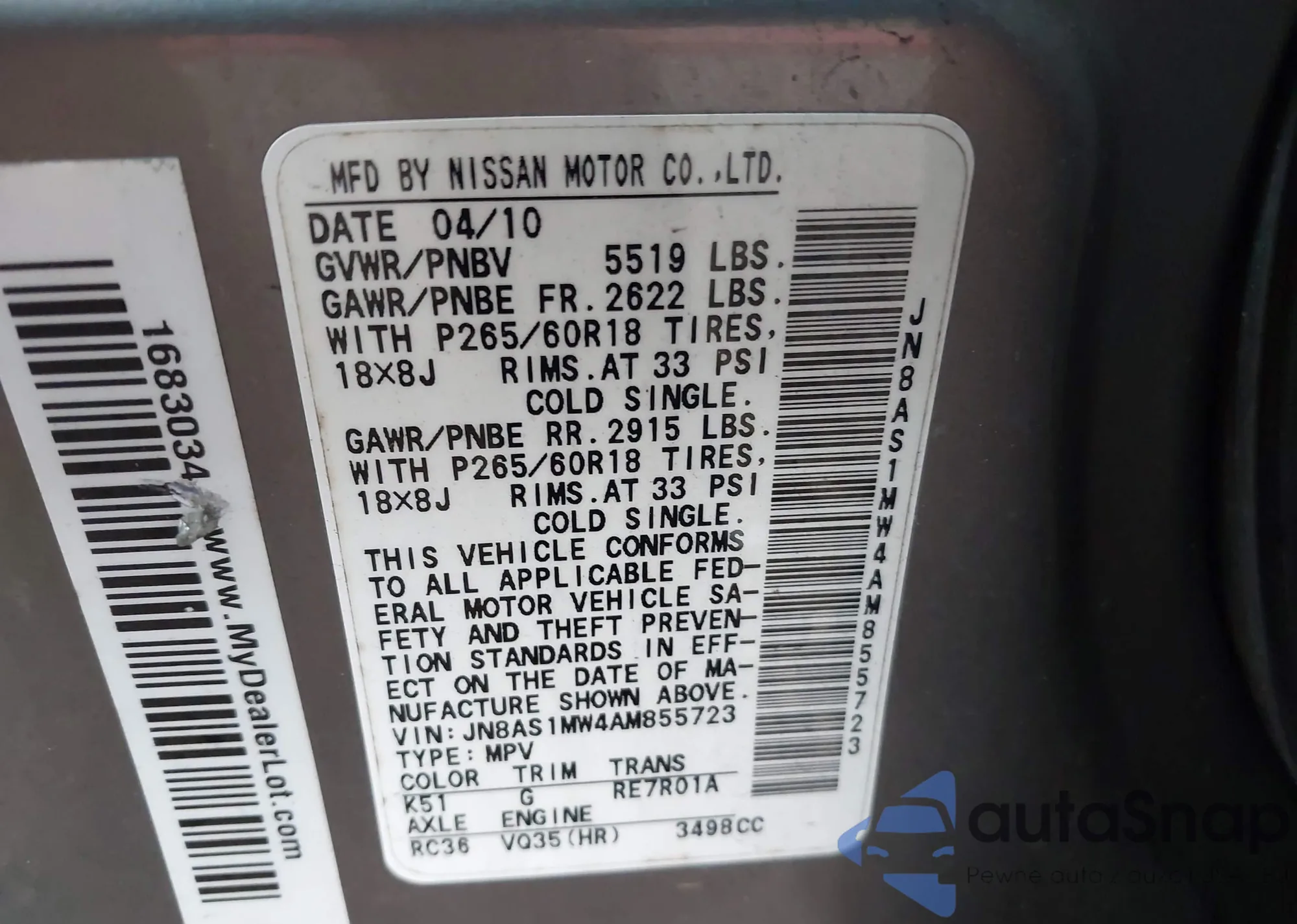 • VIN JN8AS1MW4AM855723