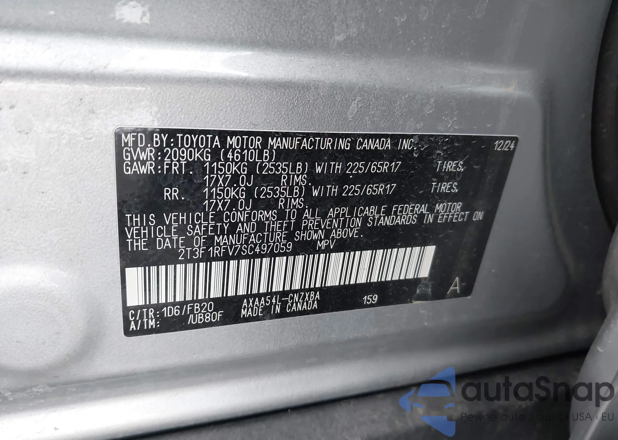 • VIN 2T3F1RFV7SC497059
