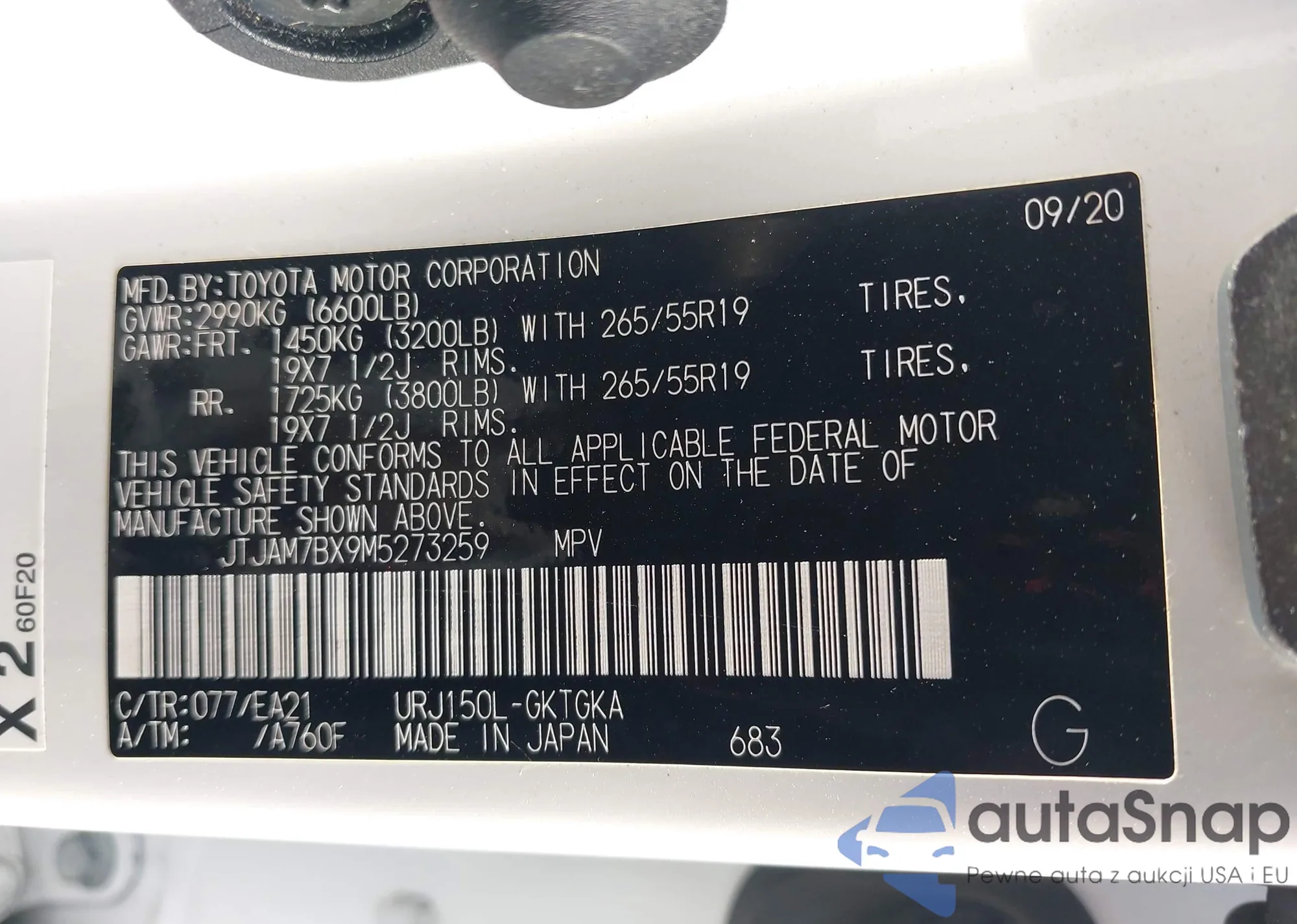 LOT: 43919532 VIN: JTJAM7BX9M5273259
