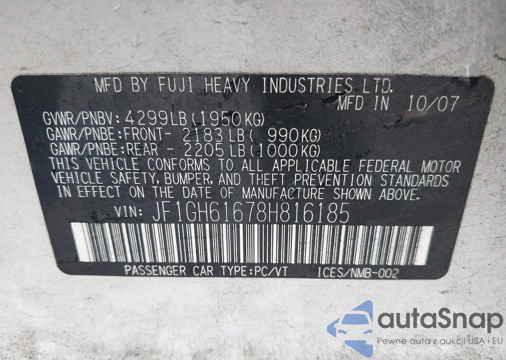 LOT: 43819801 VIN: 1FTSW31R08EA11567