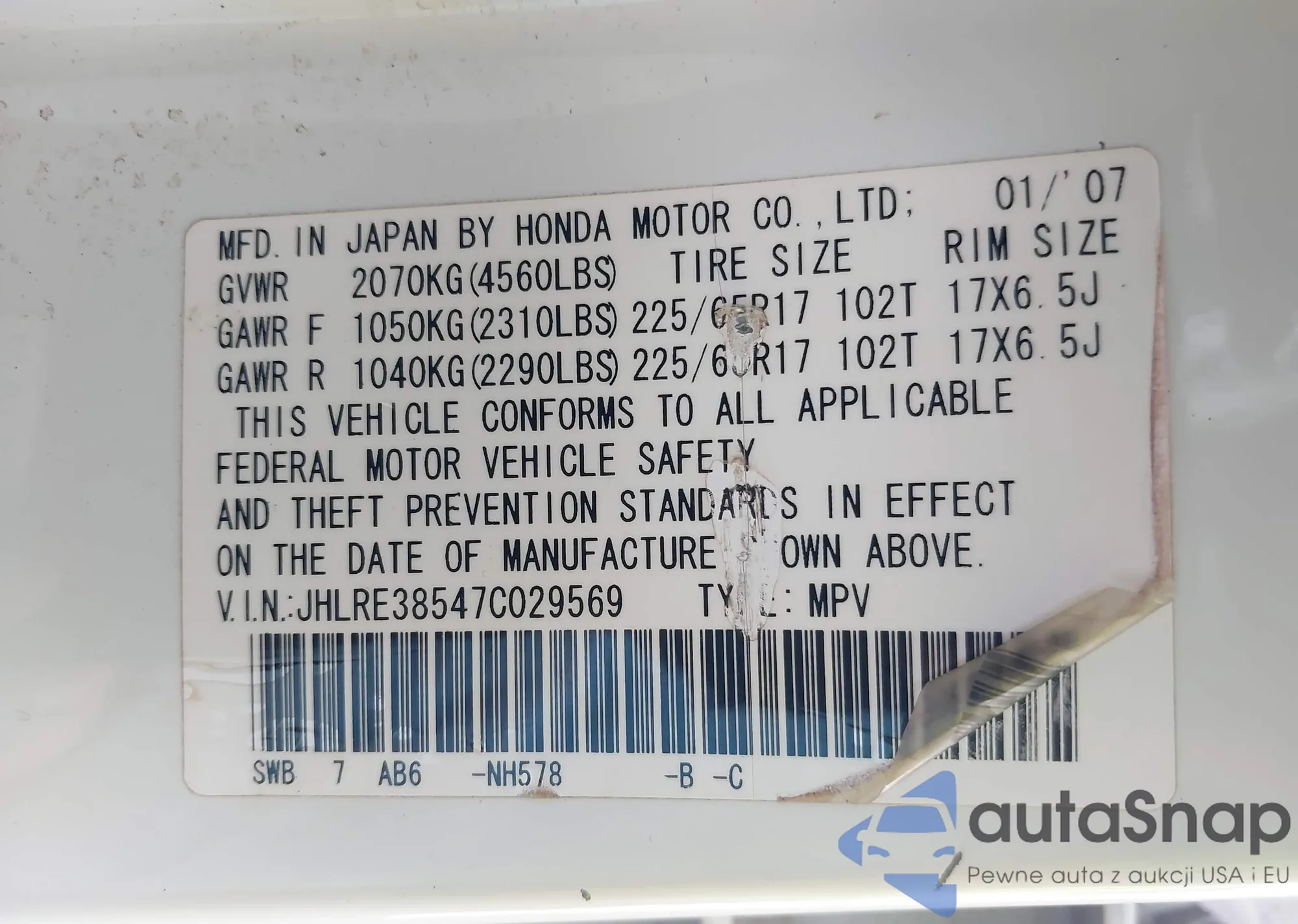 • VIN JTMRJREV9JD229686