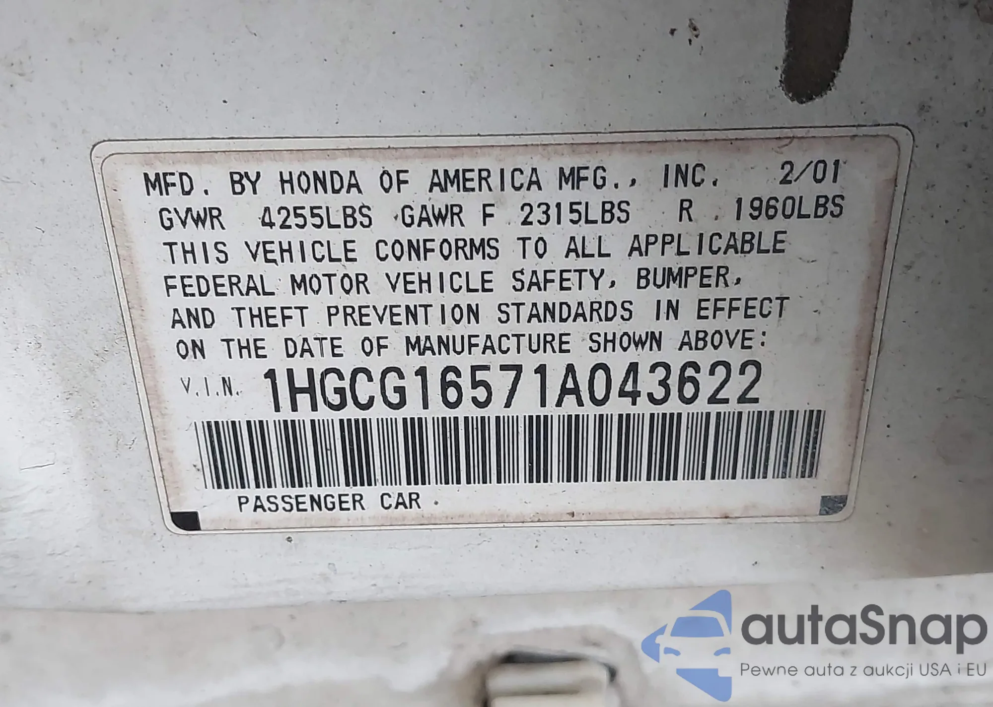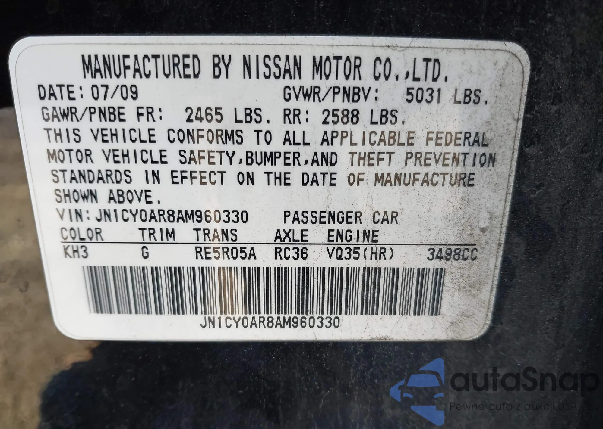LOT: 43949301 VIN: JN1CY0AR8AM960330