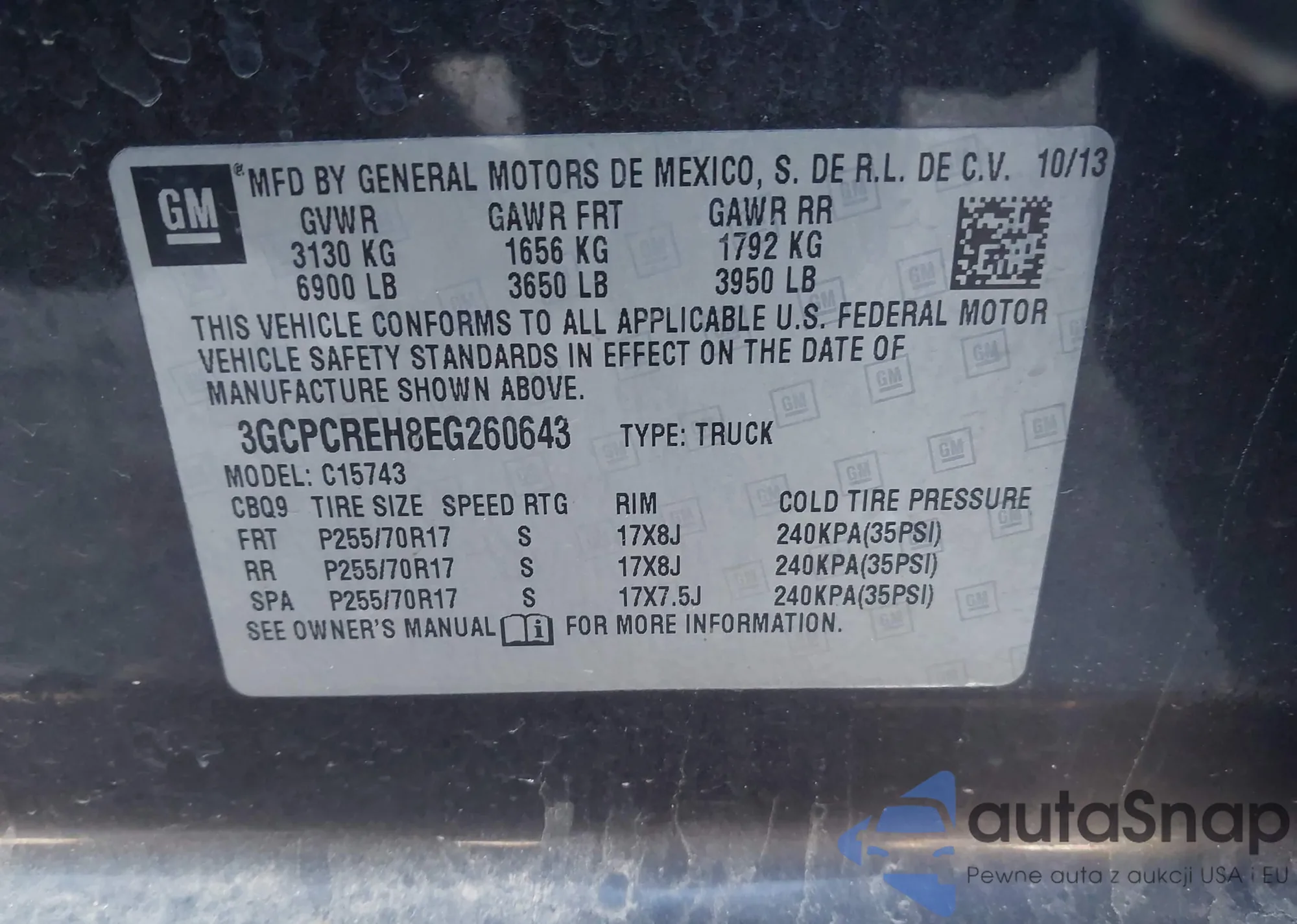 • VIN 3GCPCREH8EG260643