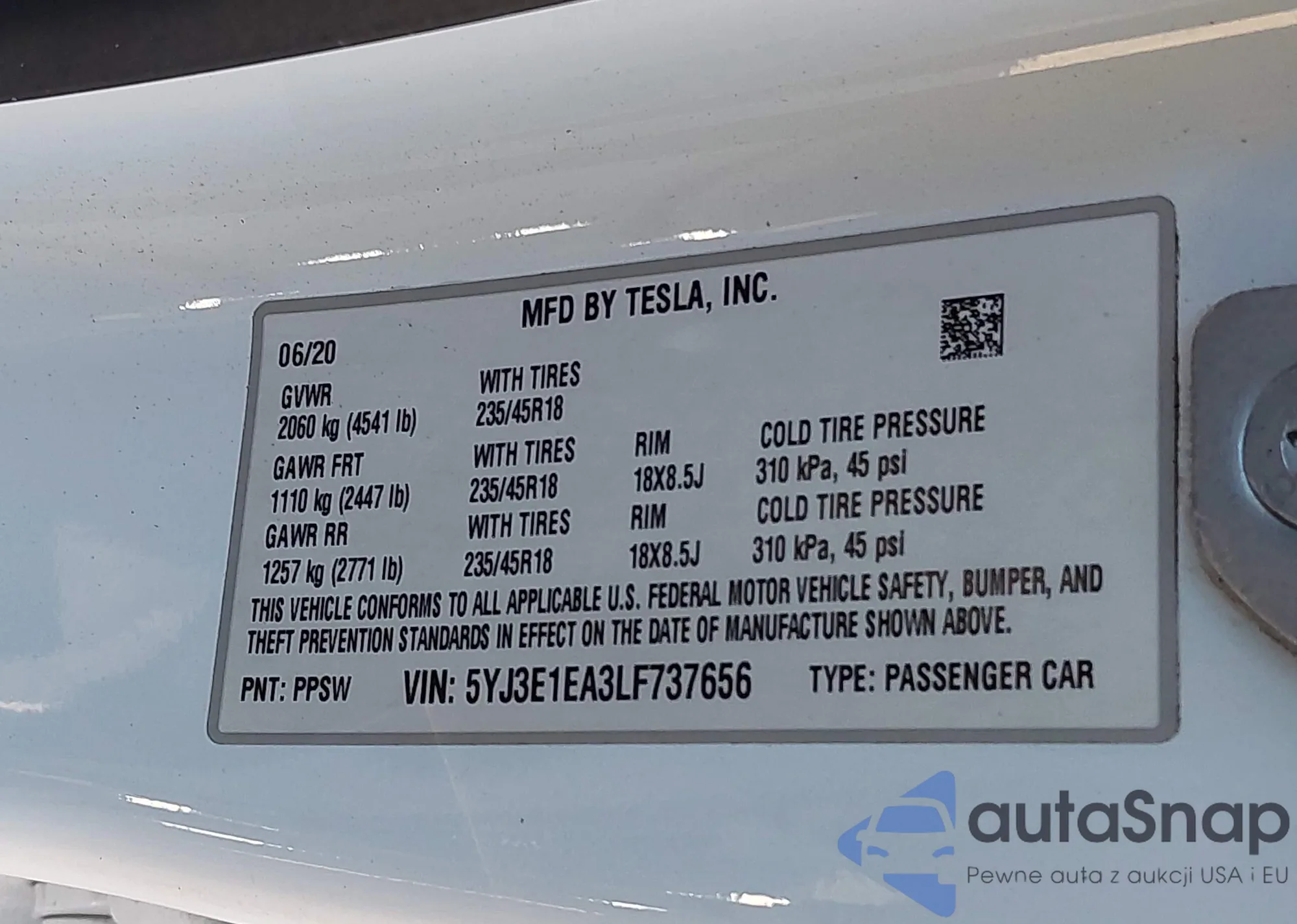 • VIN 5YJ3E1EA3LF737656