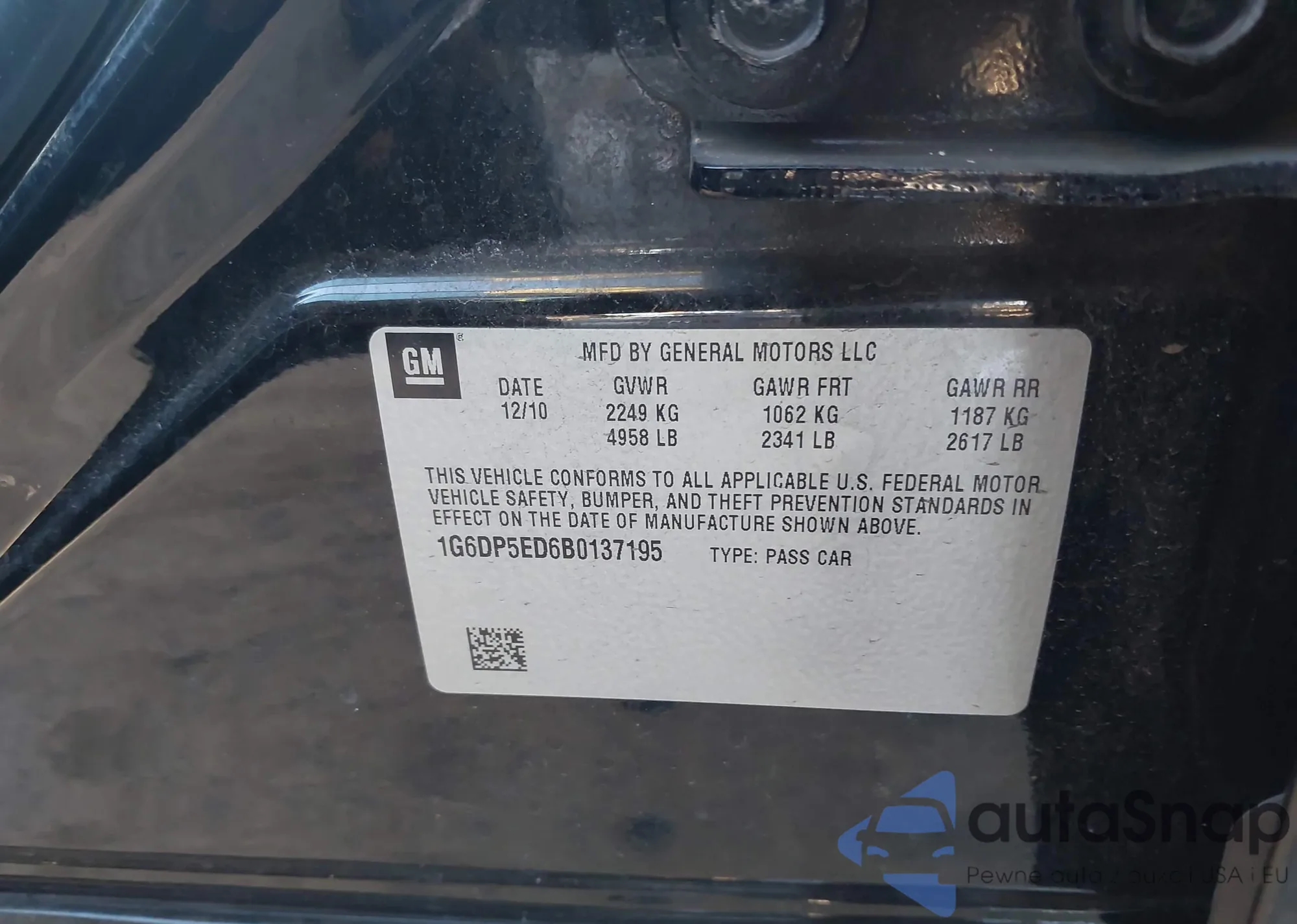 • VIN 1G6DP5ED6B0137195