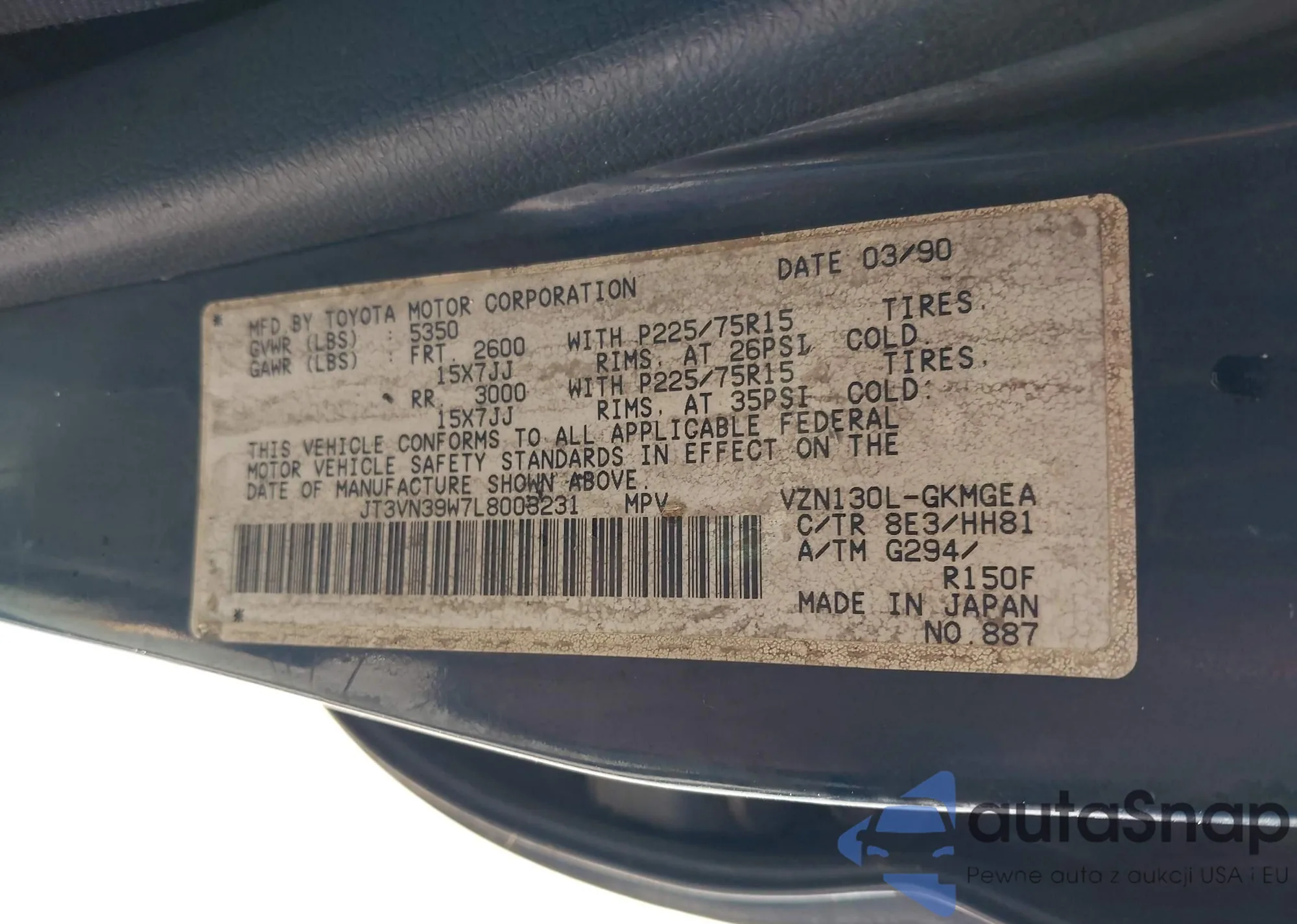 LOT: 43951556 VIN: JT3VN39W7L8003231