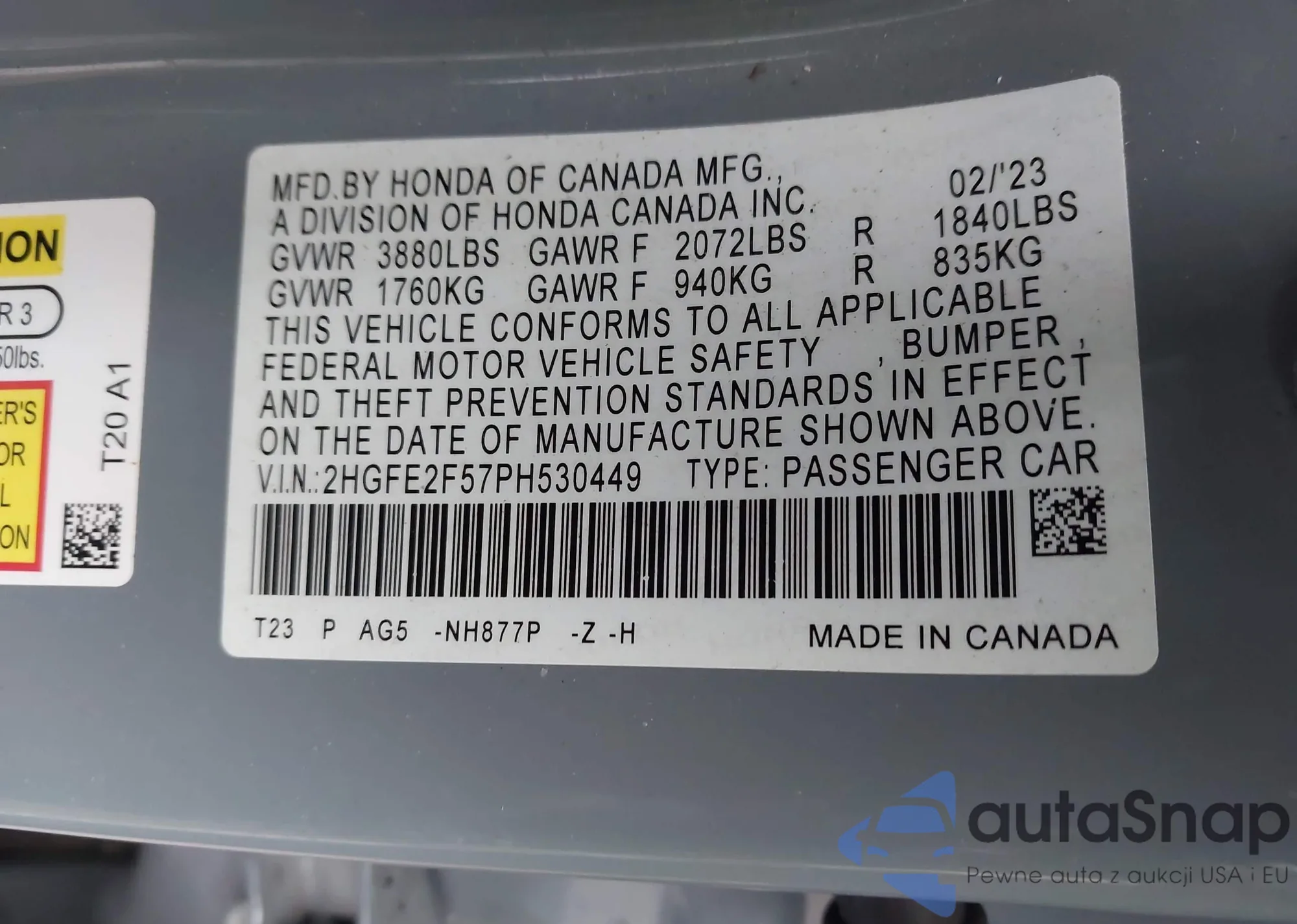 • VIN 2HGFE2F57PH530449