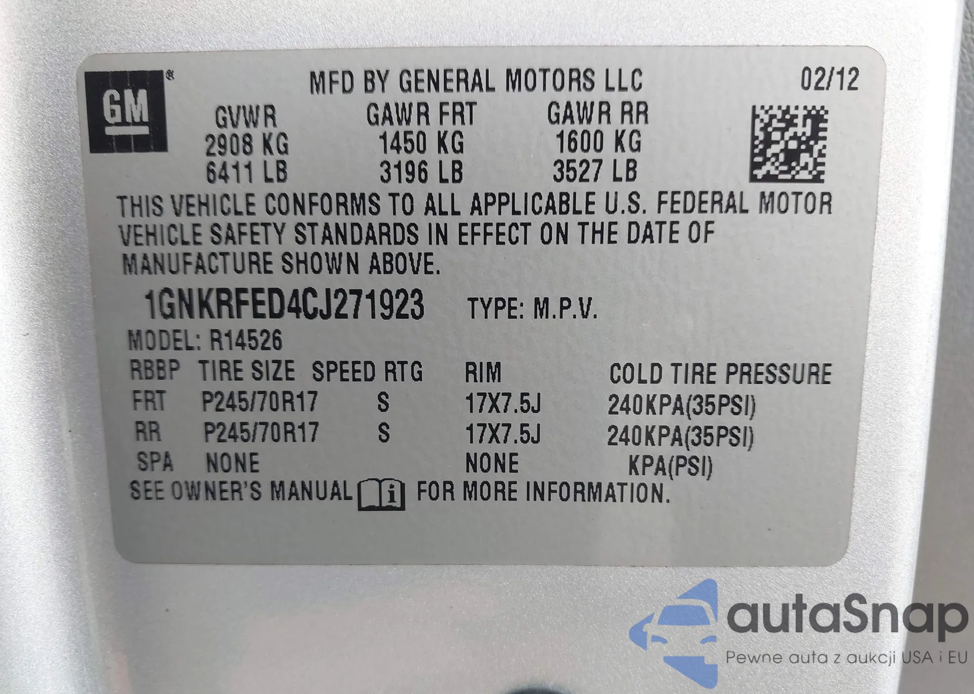 LOT: 43794762 VIN: 7FARW1H53JE018804