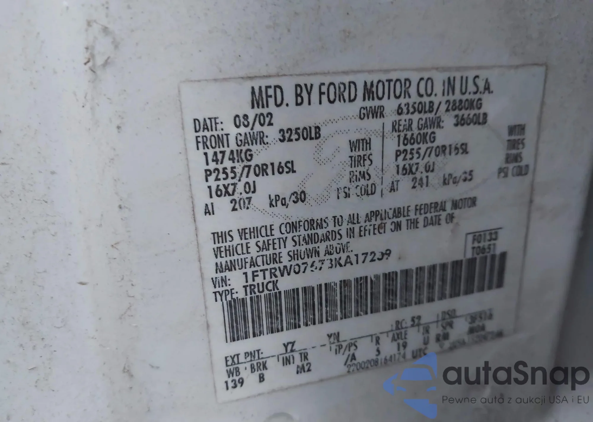 LOT: 43795331 VIN: 1FTEW1EG8FKE39962