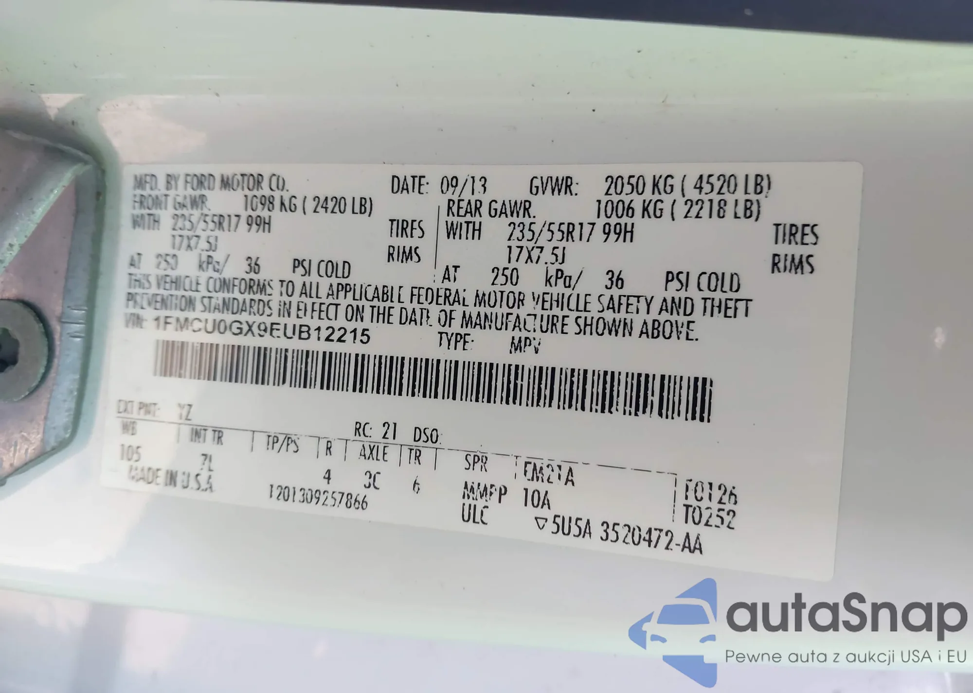 LOT: 43660541 VIN: 1FMCU0GX9EUB12215