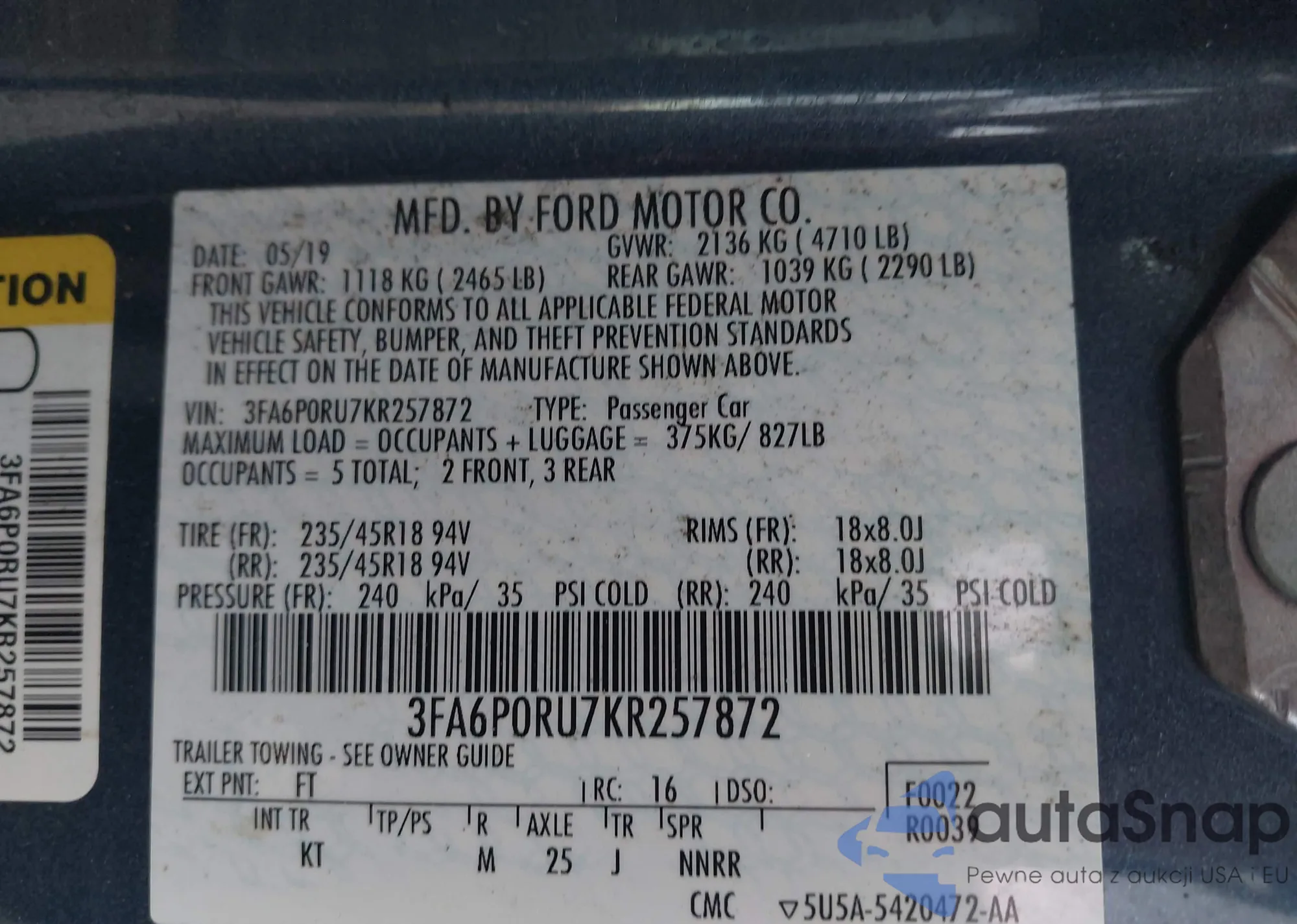 • VIN 2FMDK4JC3DBC67239