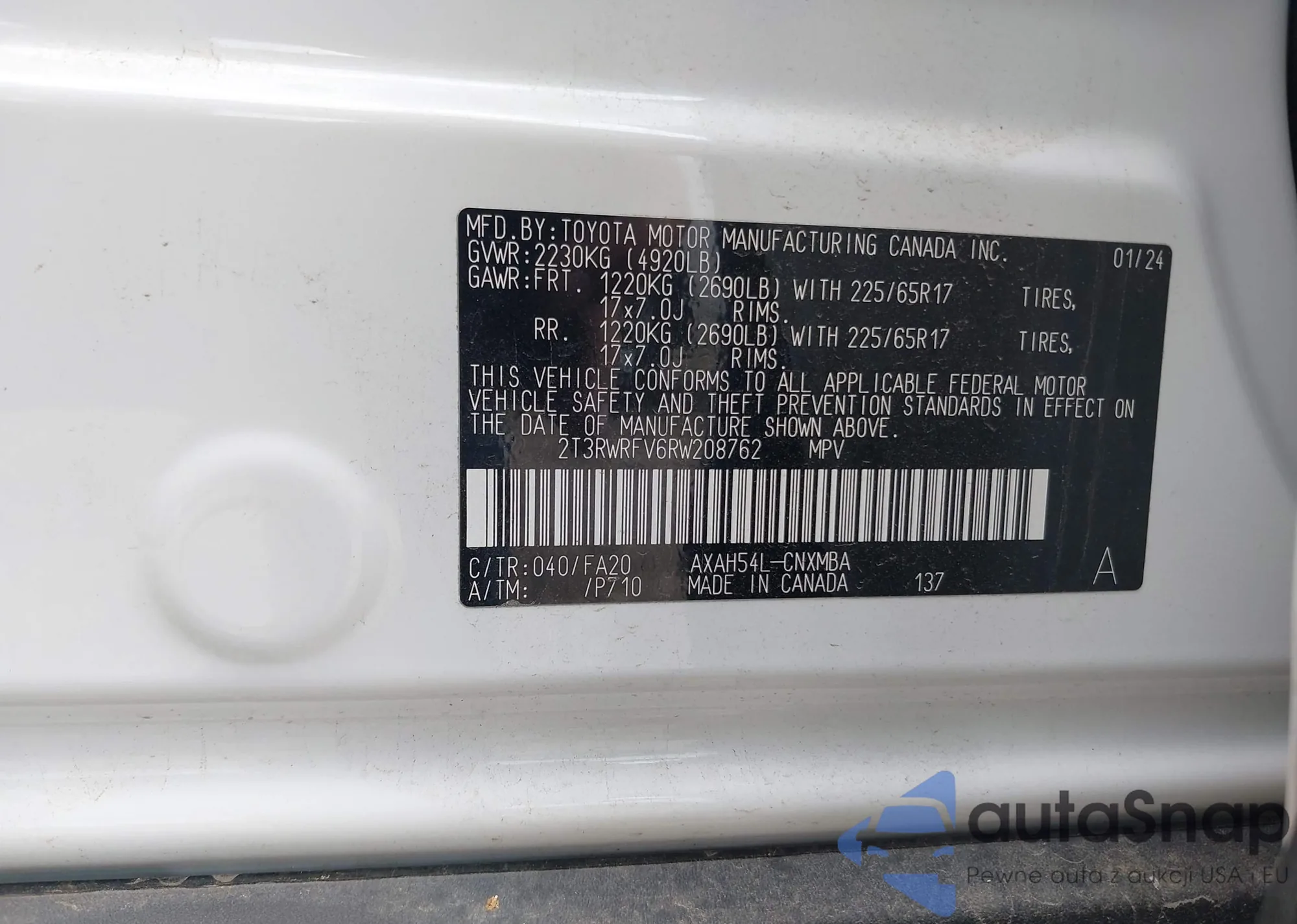 • VIN 2T3RWRFV6RW208762