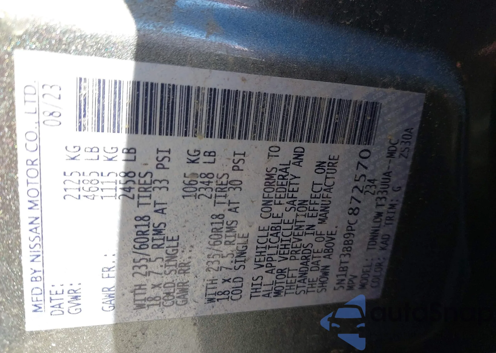 LOT: 43741604 VIN: 5N1BT3BB9PC872570