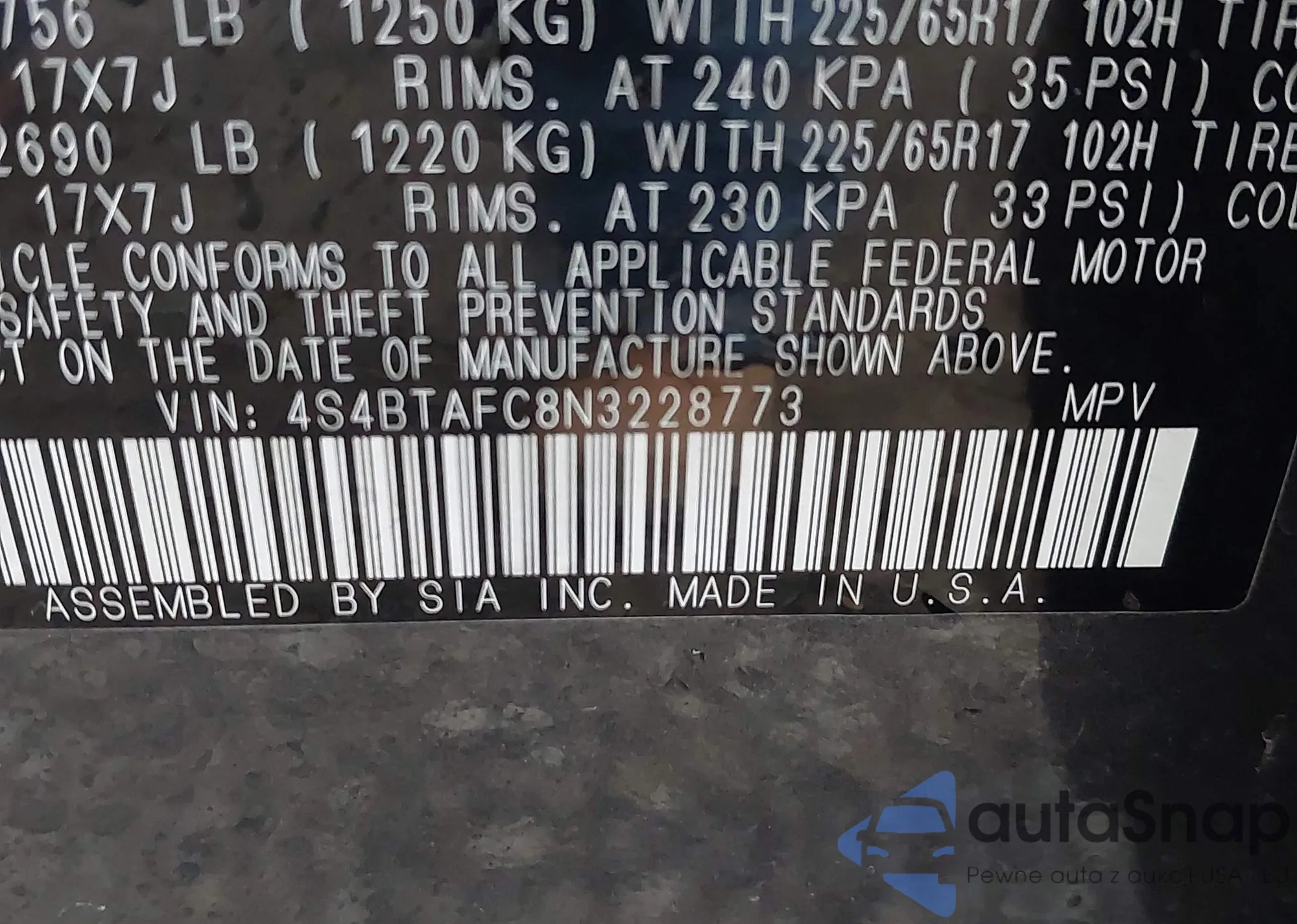 • VIN 2T2ZZMCA7JC095149