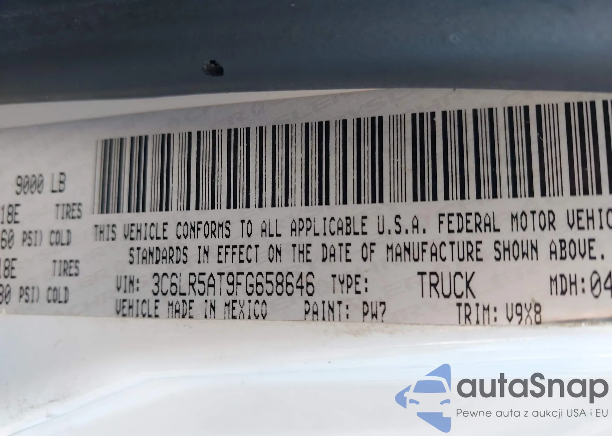 • VIN 3C6LR5AT9FG658646