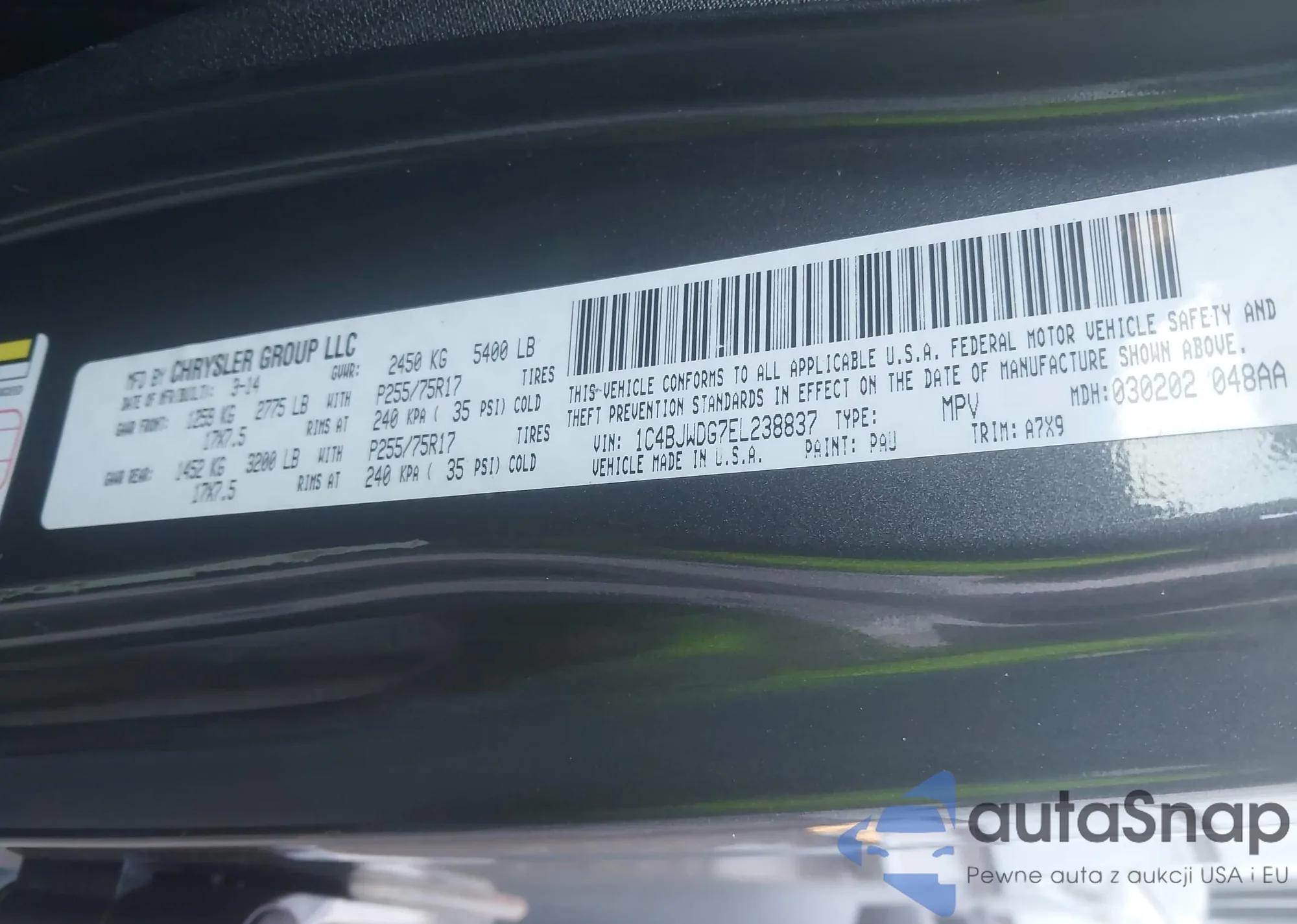 LOT: 43217841 VIN: 1C4PJMBS8EW244453