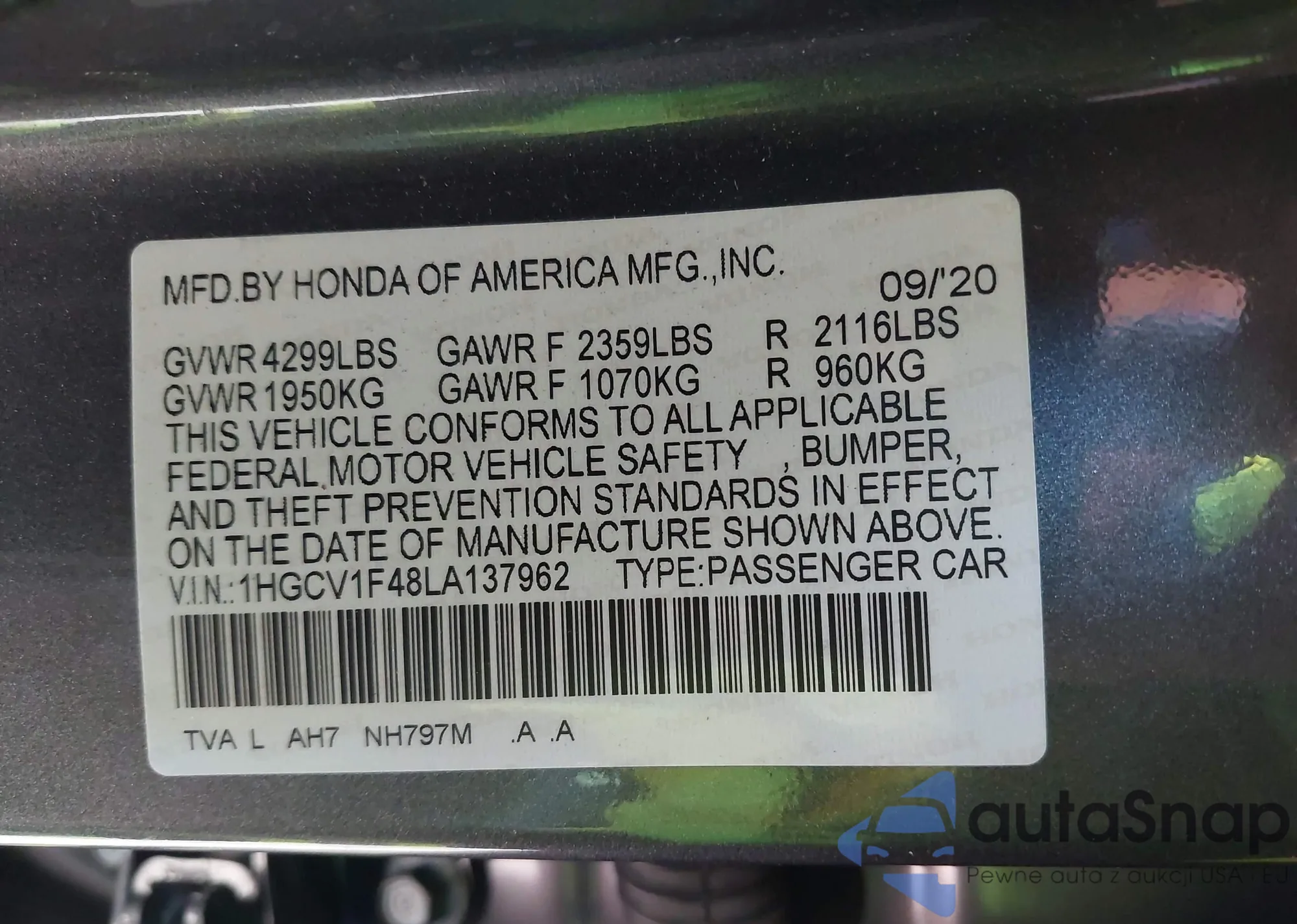 LOT: 43804169 VIN: 1HGCP26779A129869