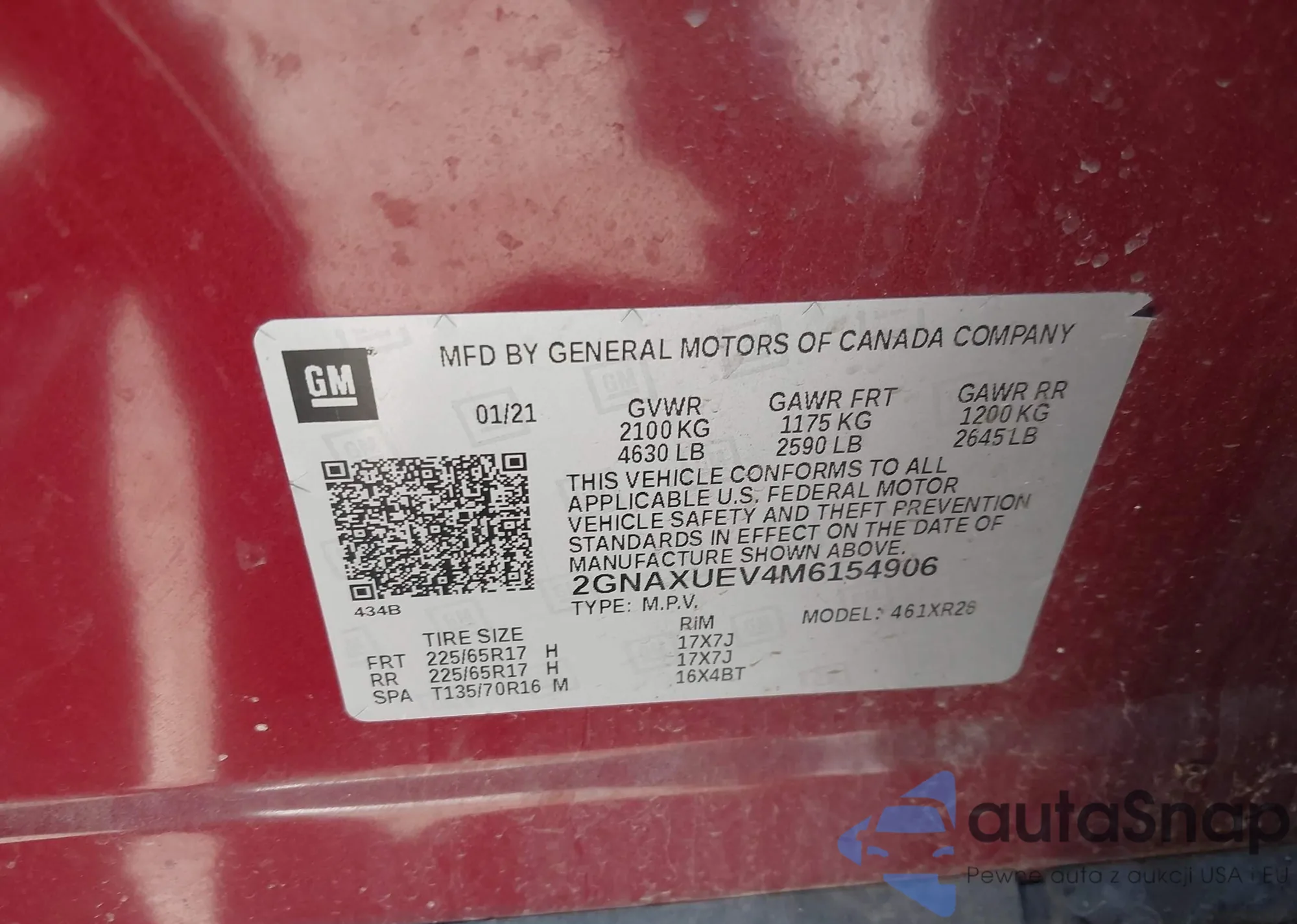 • VIN 2GNAXUEV4M6154906