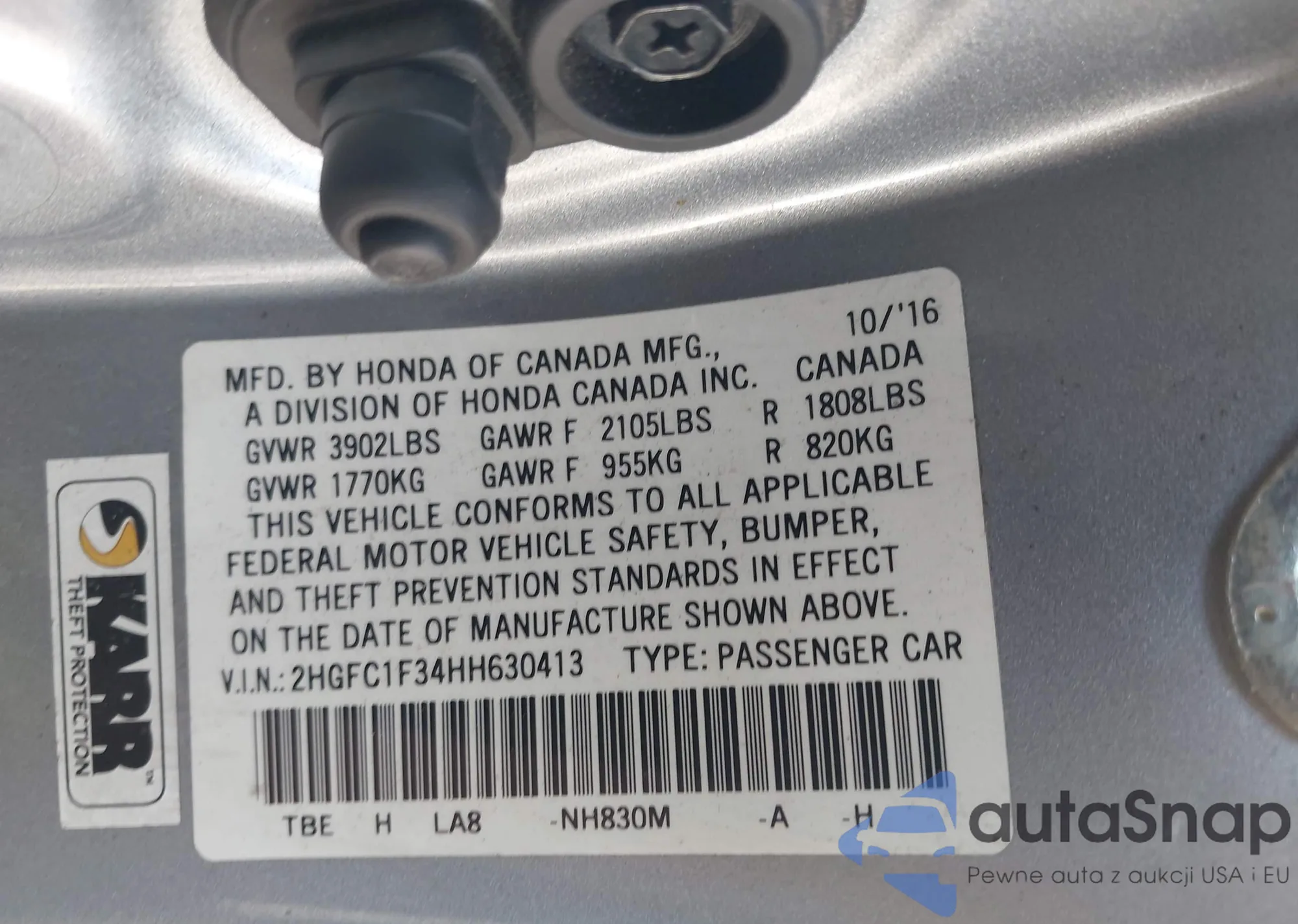 • VIN 2HKRM4H37EH610327