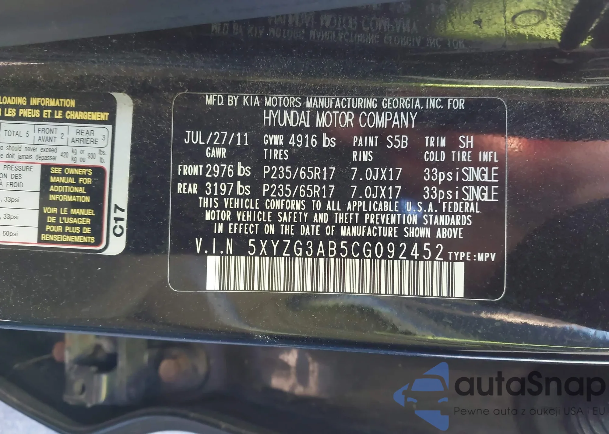 • VIN 5XYZG3AB5CG092452