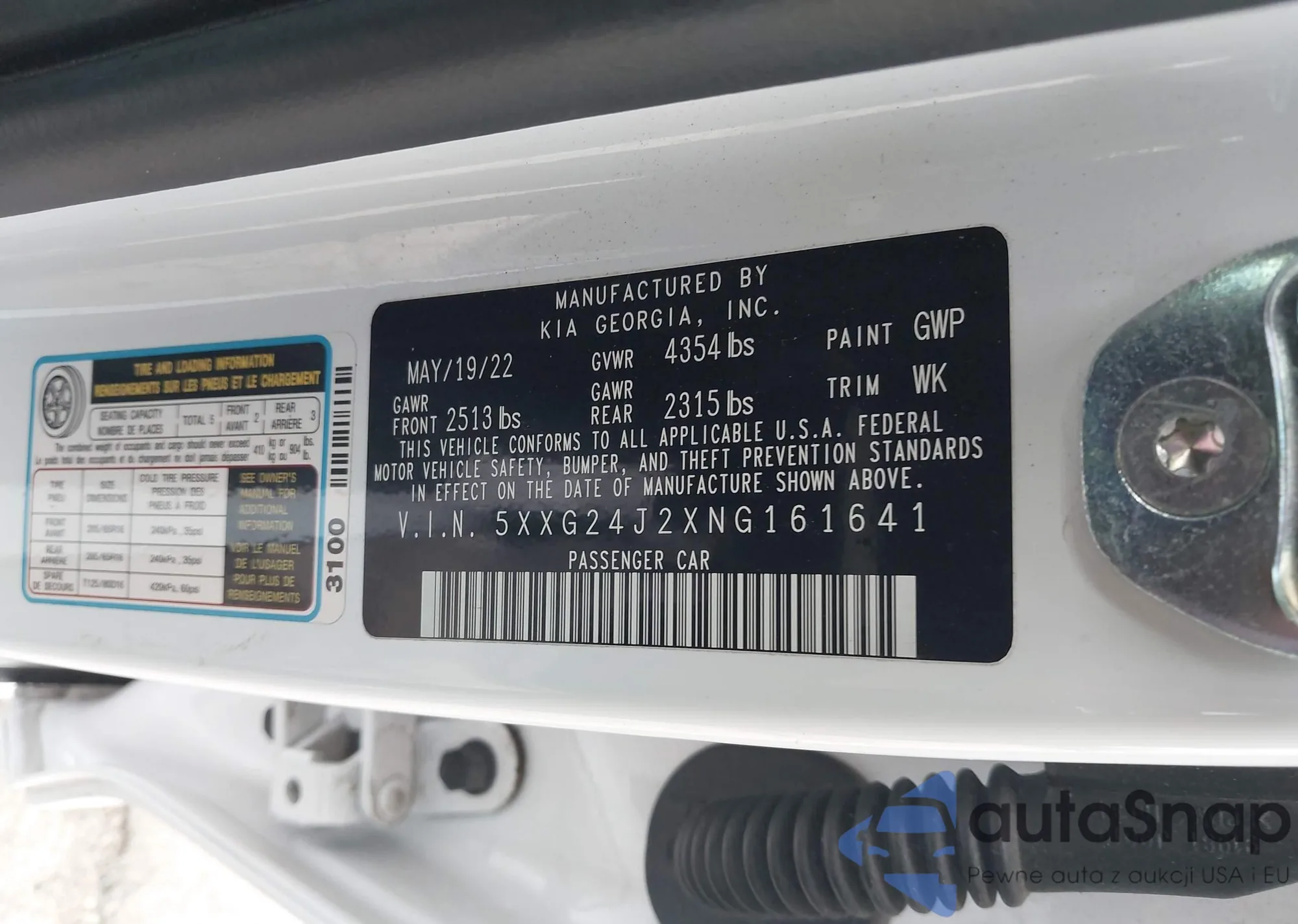 • VIN 5XXG24J2XNG161641