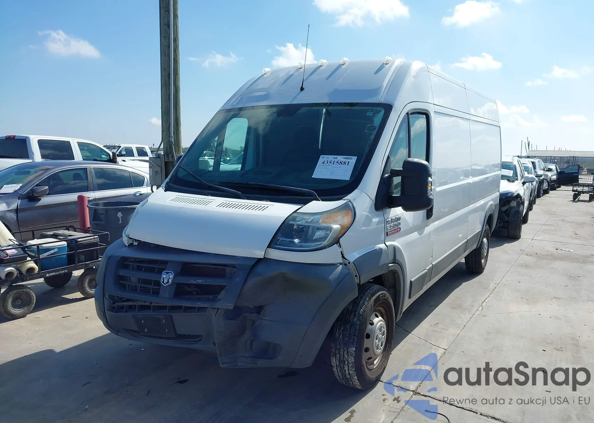 2017 Ram Promaster 2500 High Roof 159 Wb из США, поврежденный, VIN 3C6TRVDG8HE515149