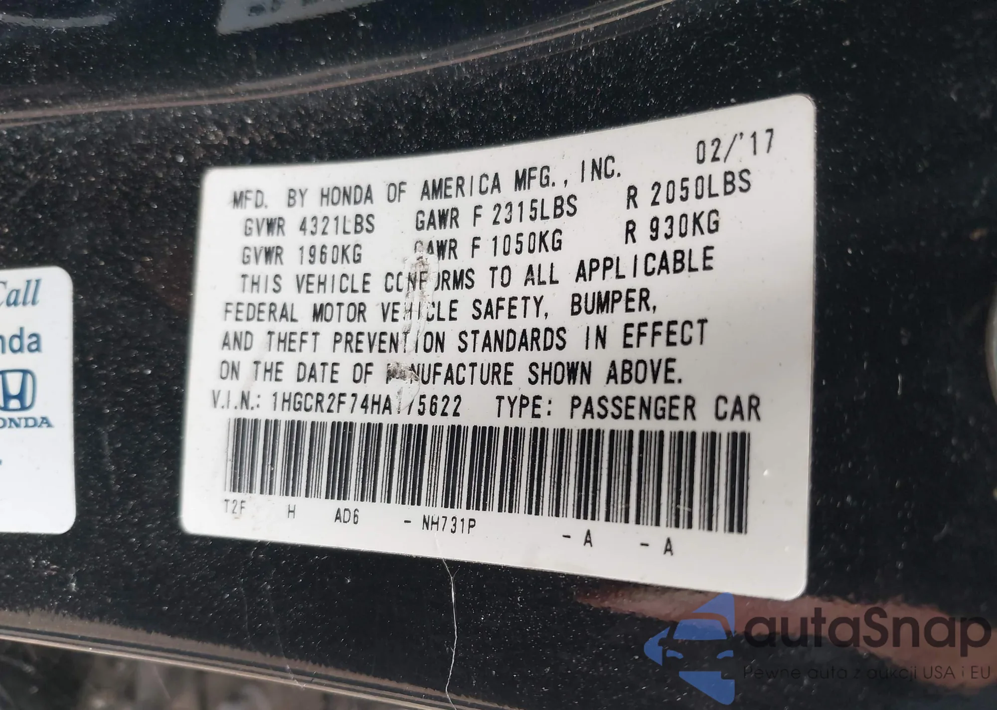 • VIN 2HJYK16318H517119
