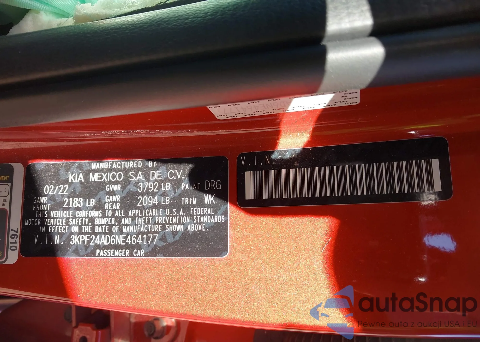 • VIN 3KPF24AD6NE464177