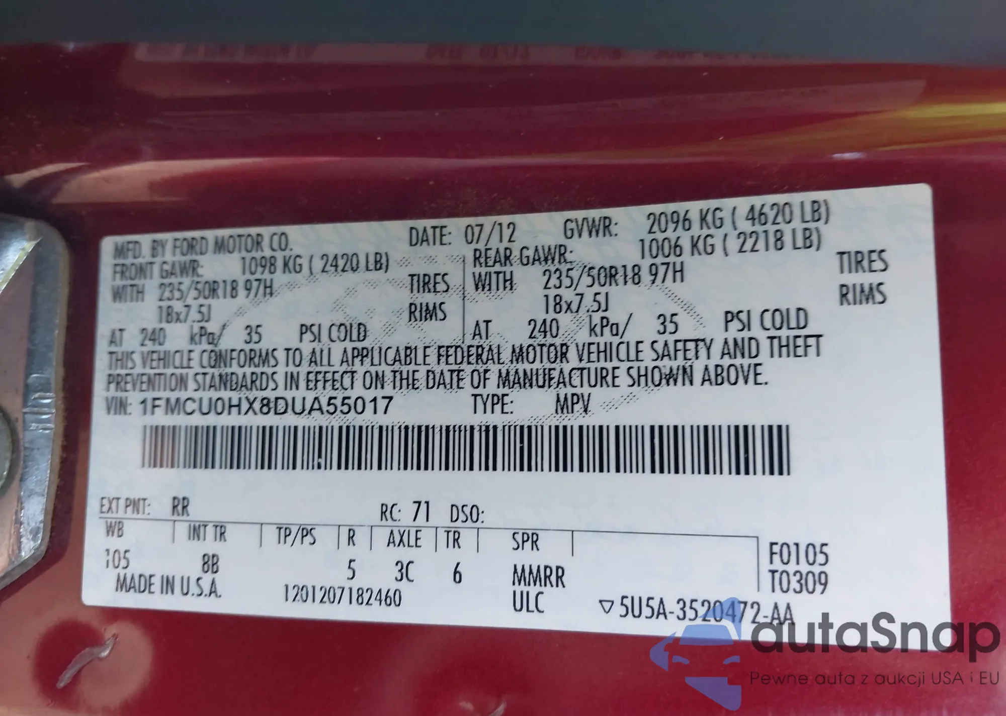 • VIN 5FNRL5H6XDB048035