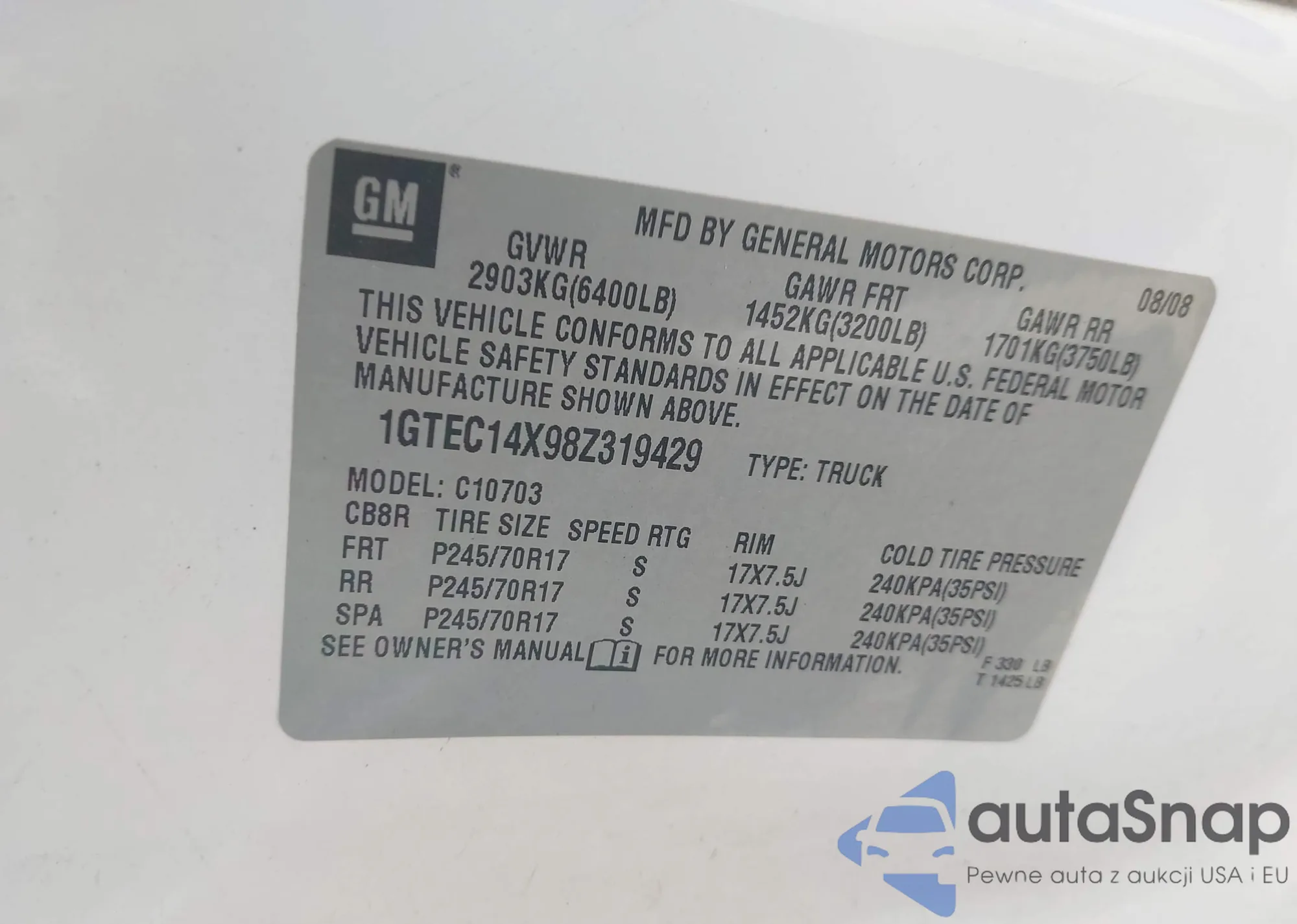 LOT: 43901008 VIN: 5TFRT54127X009010