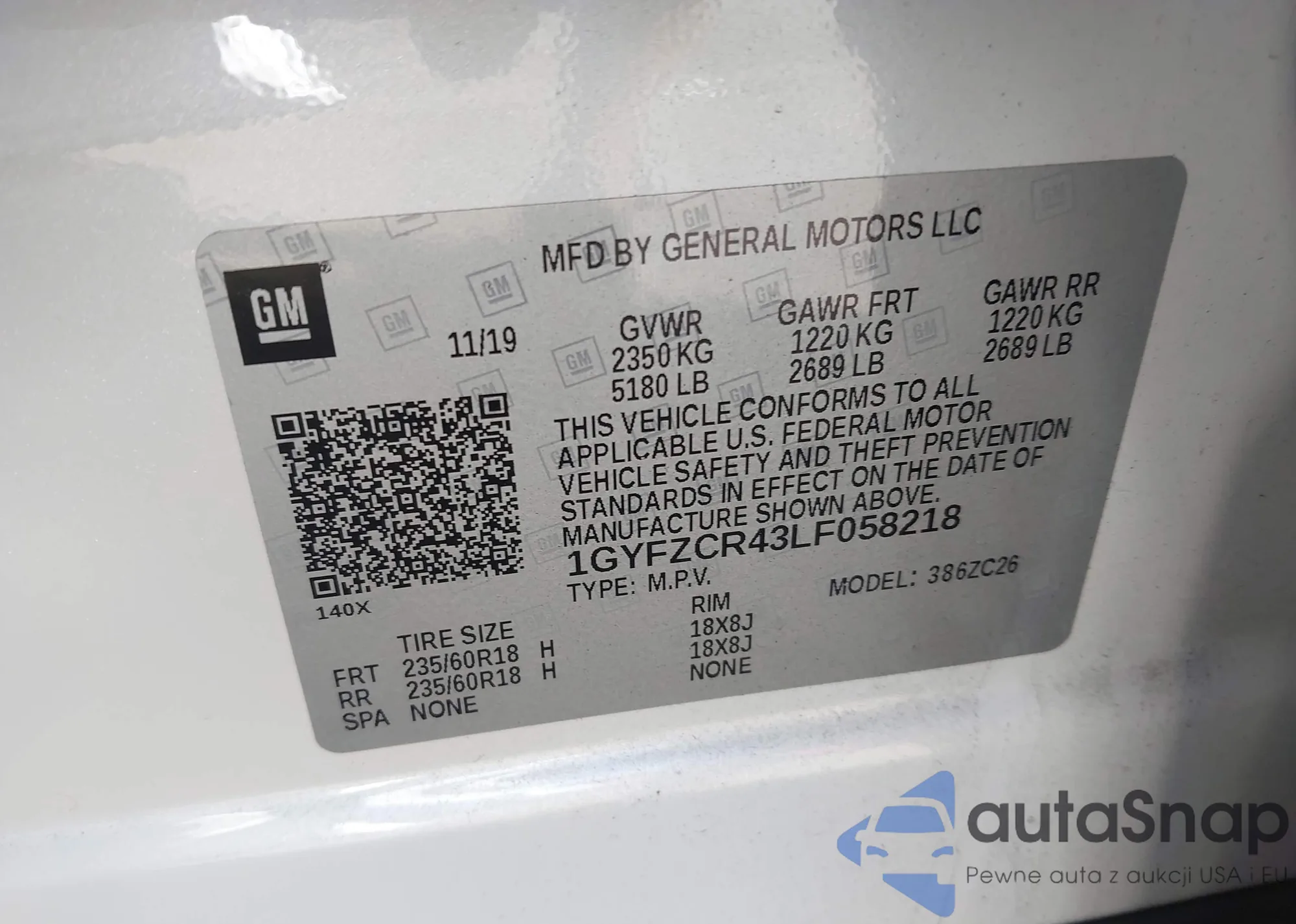 • VIN 1GYFZCR43LF058218