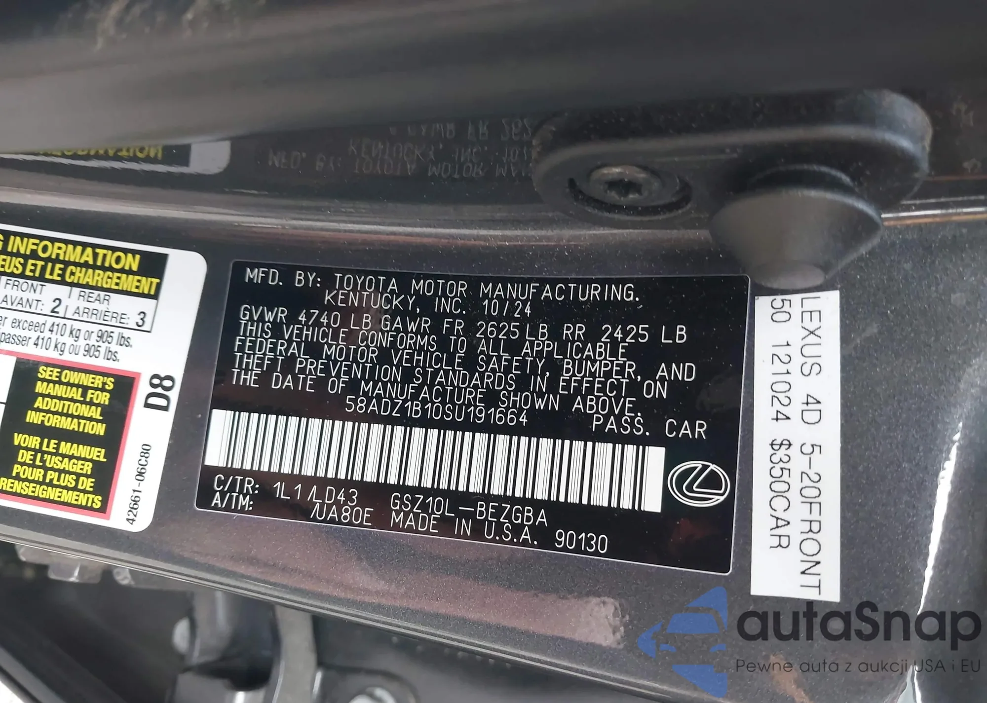LOT: 43725836 VIN: 4T1BK36B55U060834