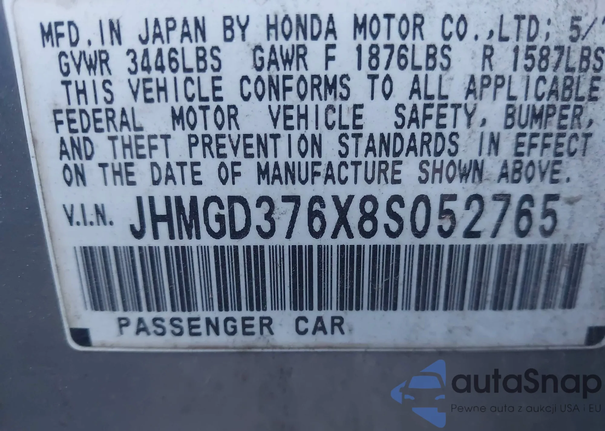 LOT: 43452418 VIN: JA32U2FU2HU007828