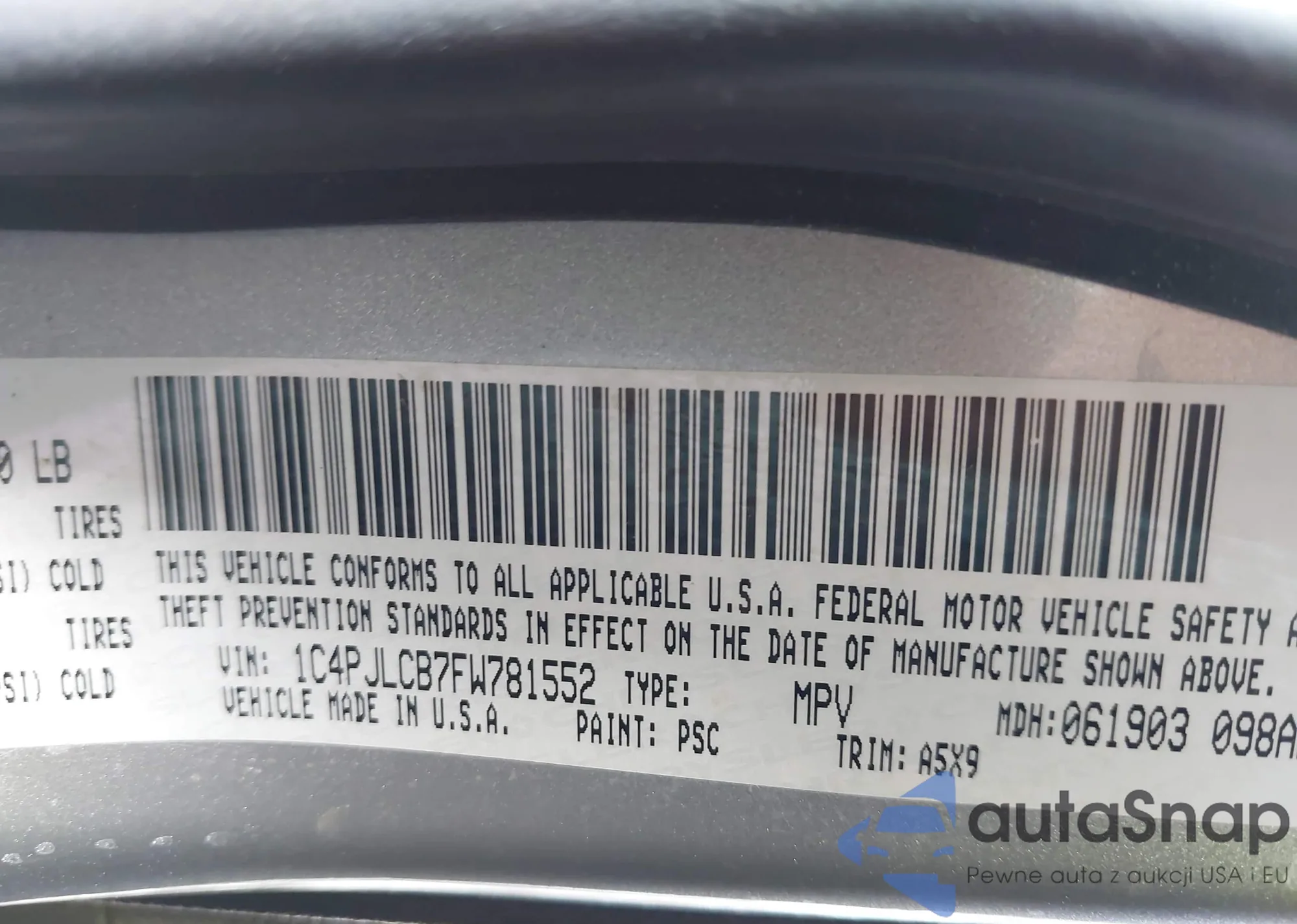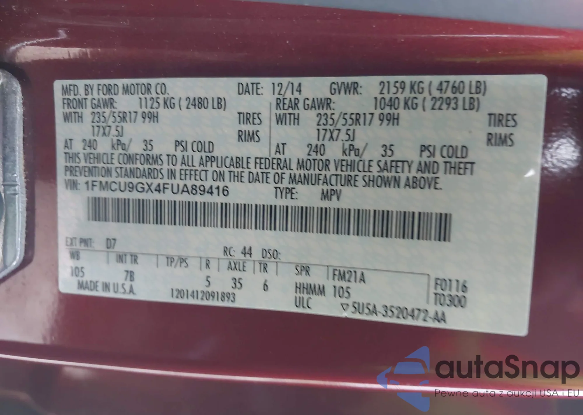 LOT: 43711550 VIN: 1FMCU9GX4FUA89416