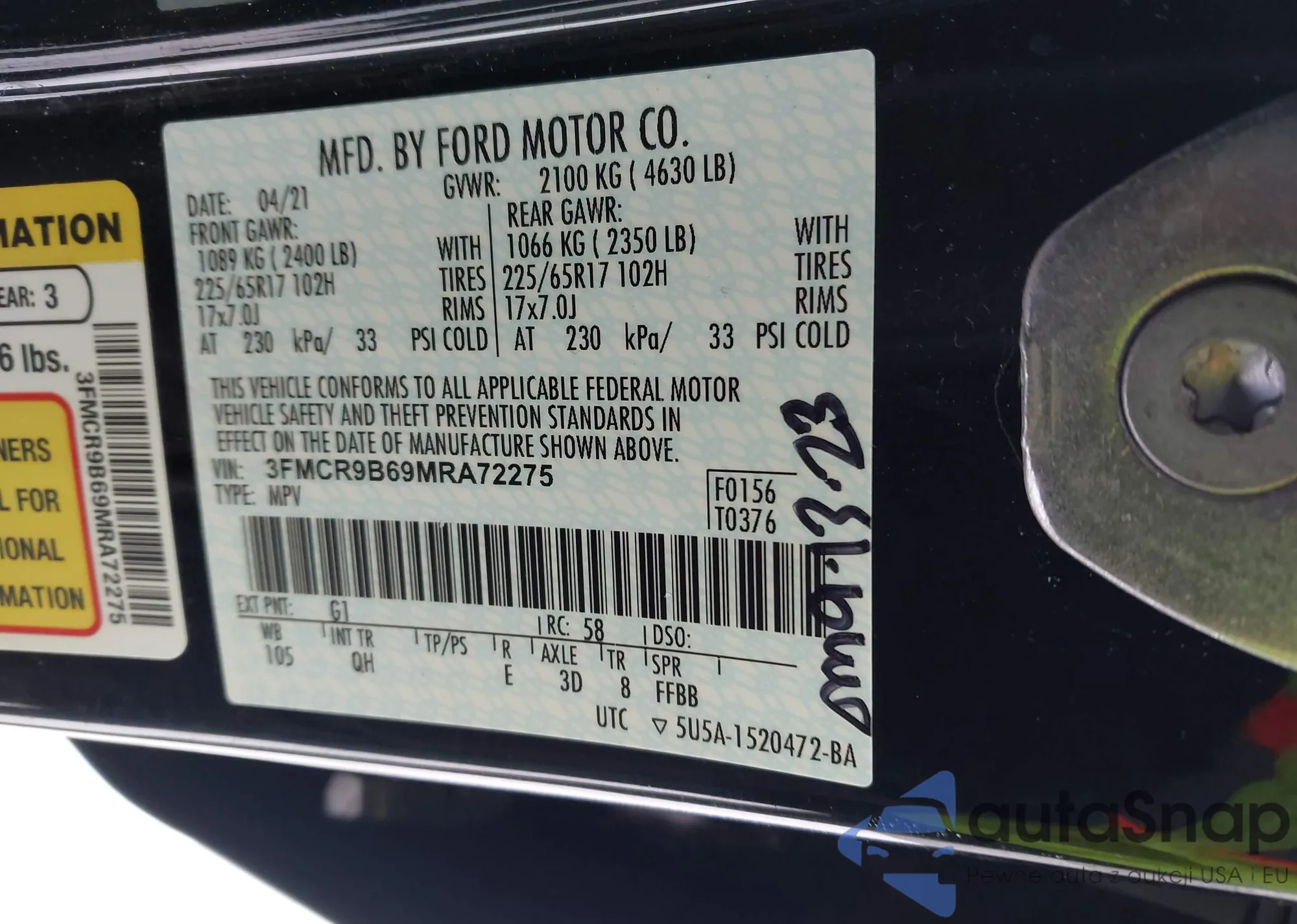 • VIN 3FMCR9B69MRA72275