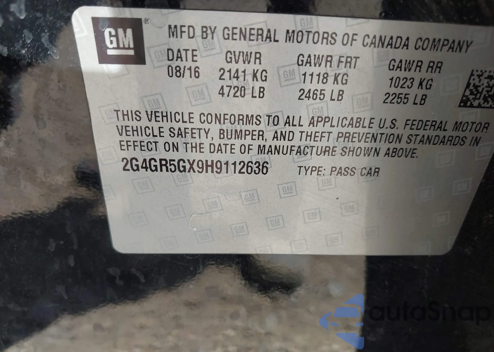 • VIN 2G4GR5GX9H9112636