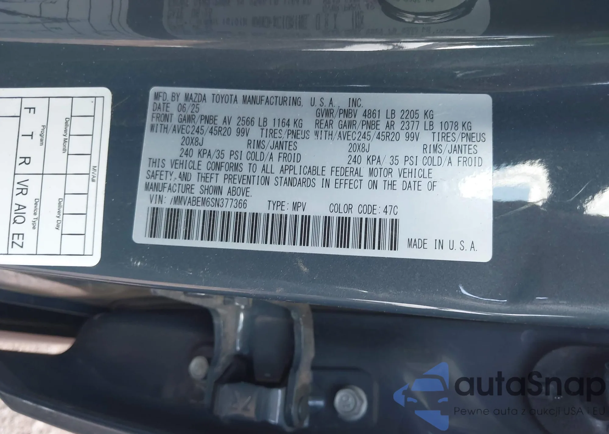 • VIN 7MMVABEM6SN377366