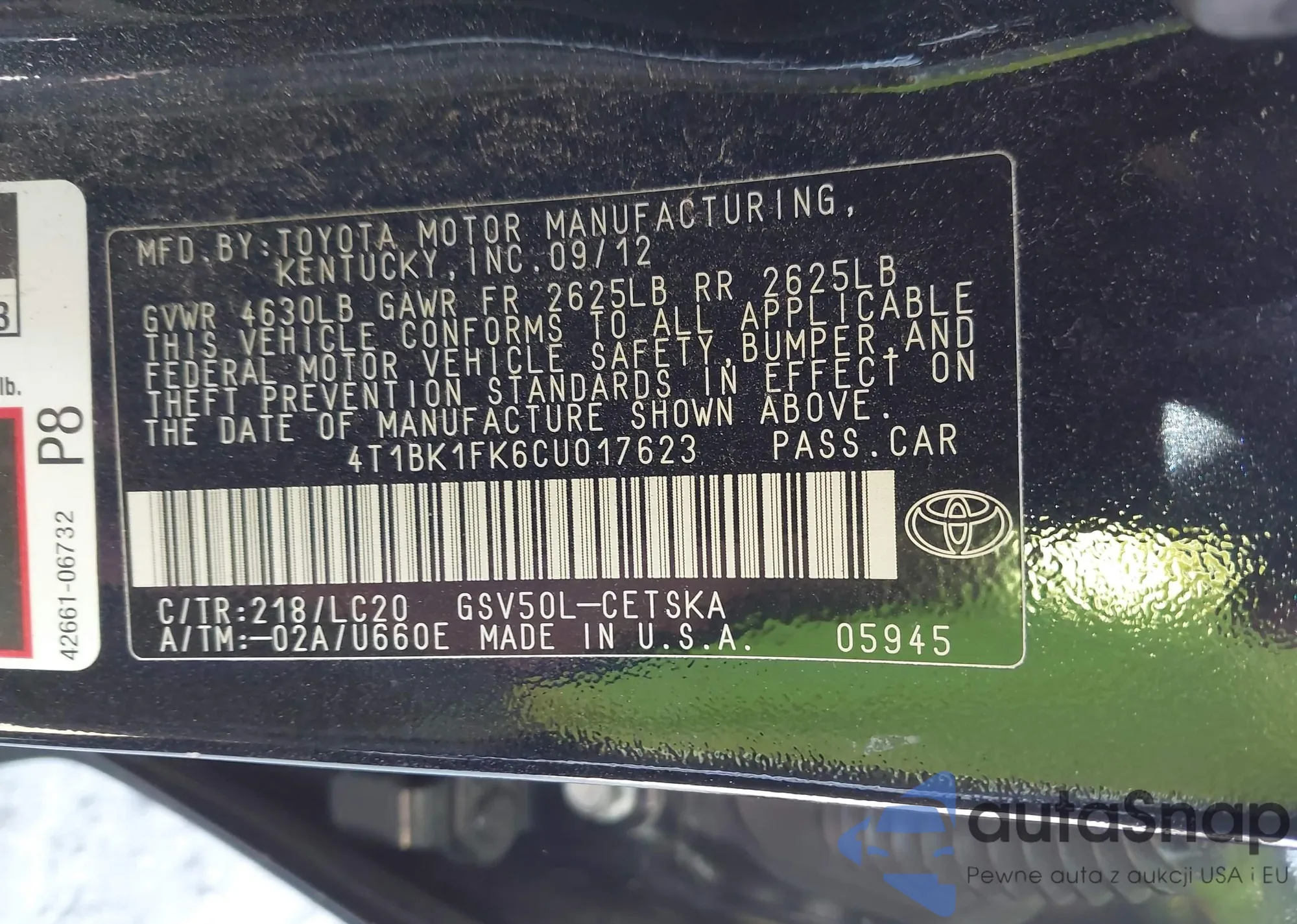 • VIN 4T1BK1FK6CU017623