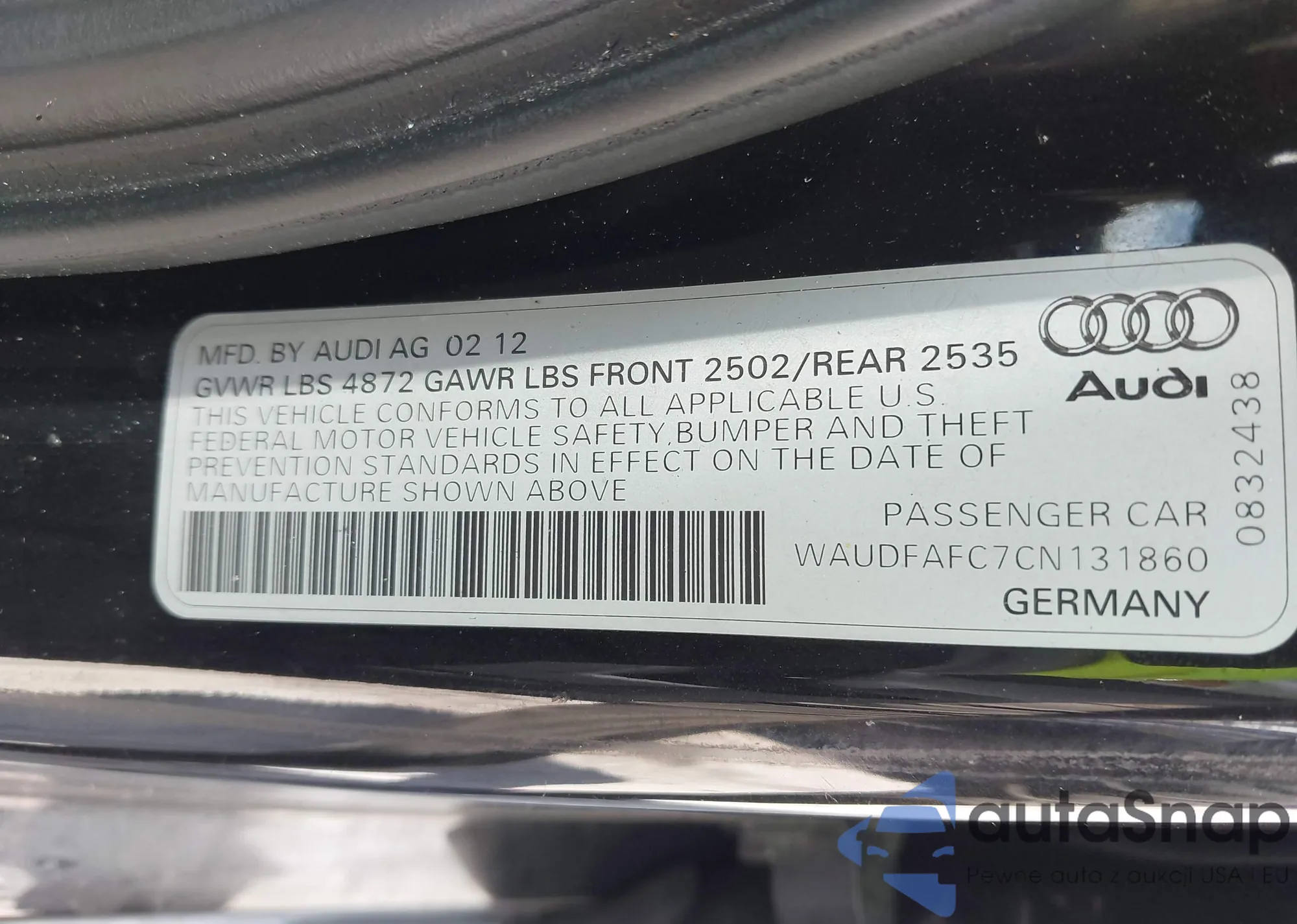 • VIN WAUDFAFC7CN131860