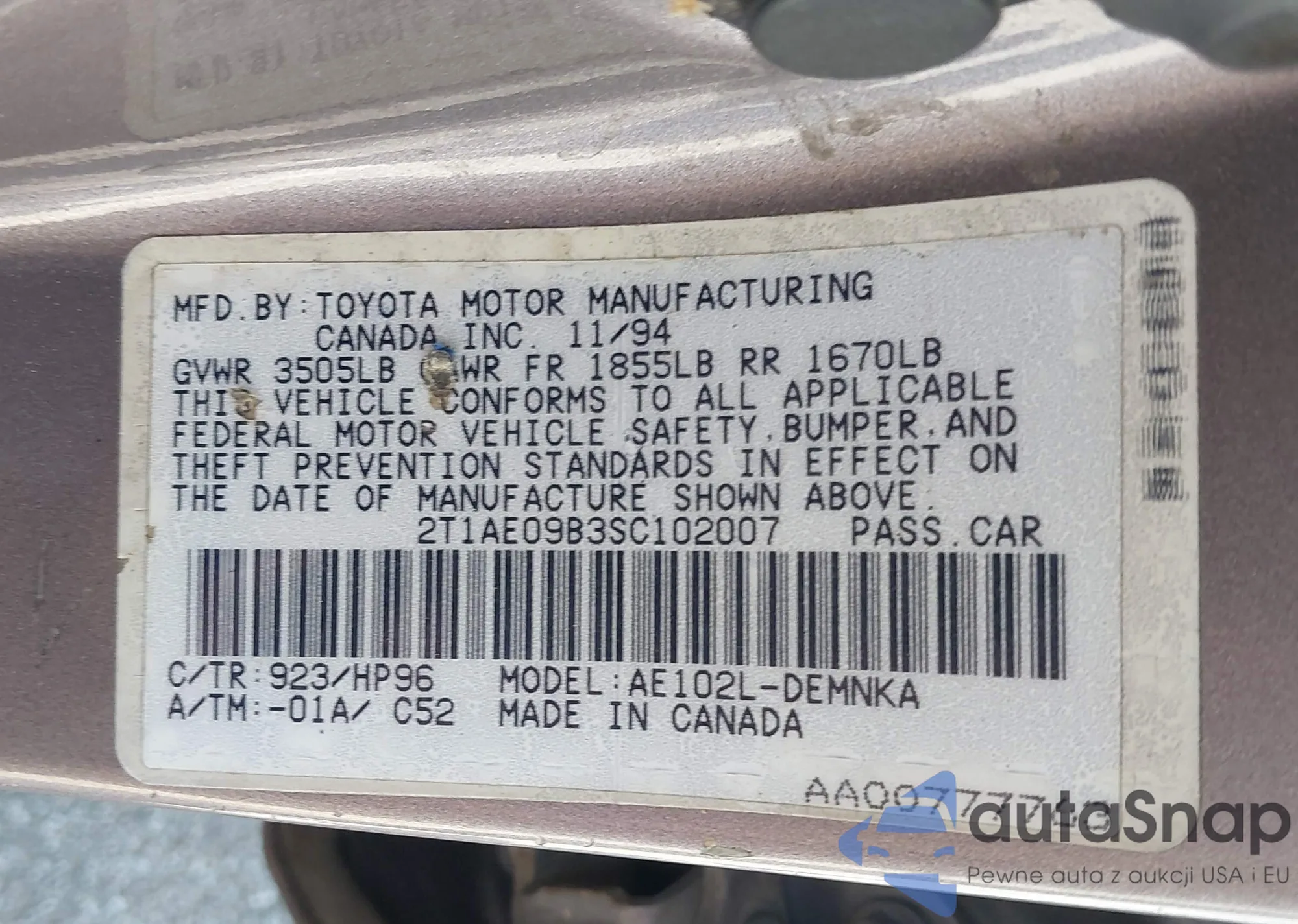 LOT: 42634293 VIN: 2T1AE09B3SC102007
