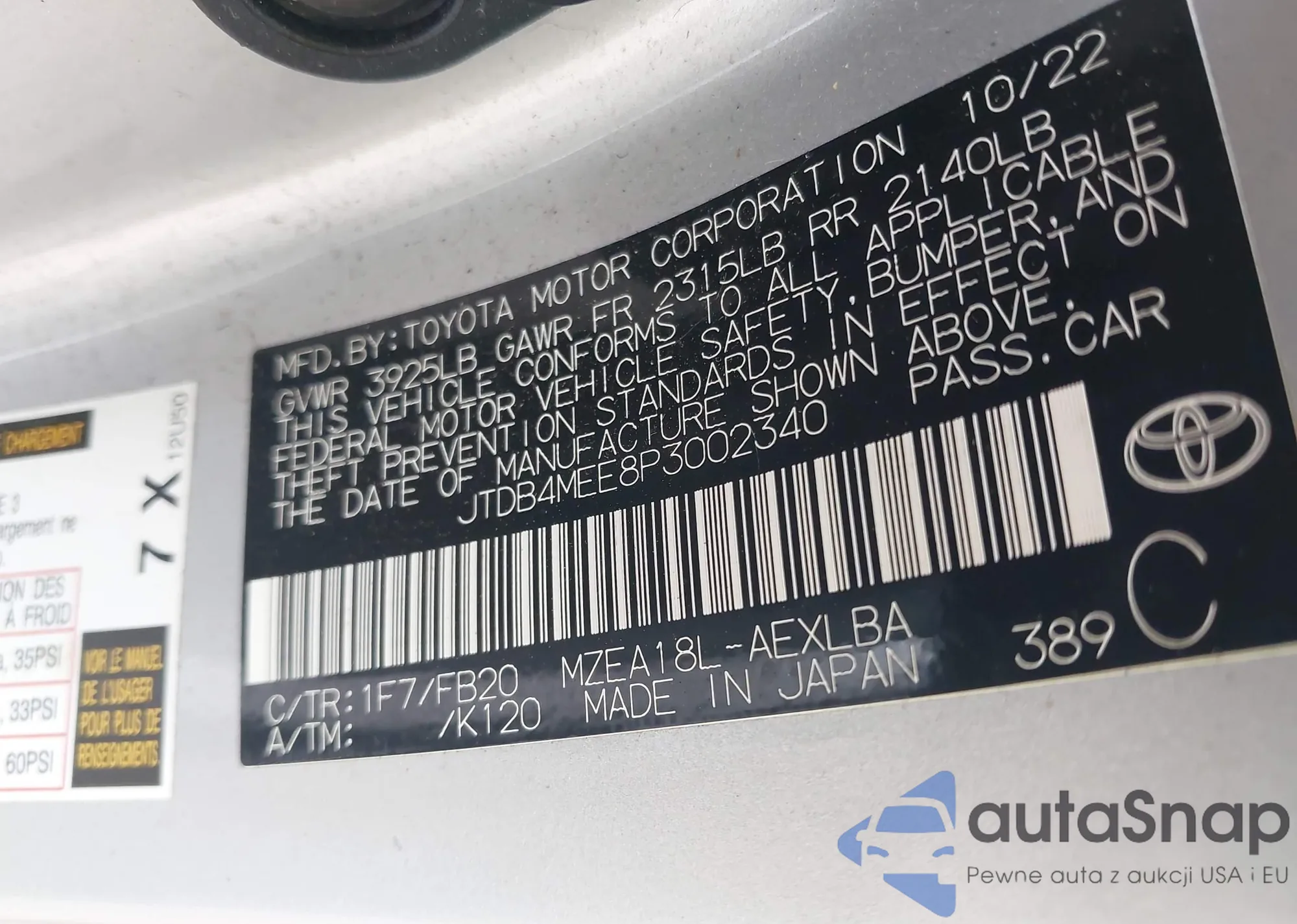 LOT: 42890484 VIN: JTDB4MEE8P3002340