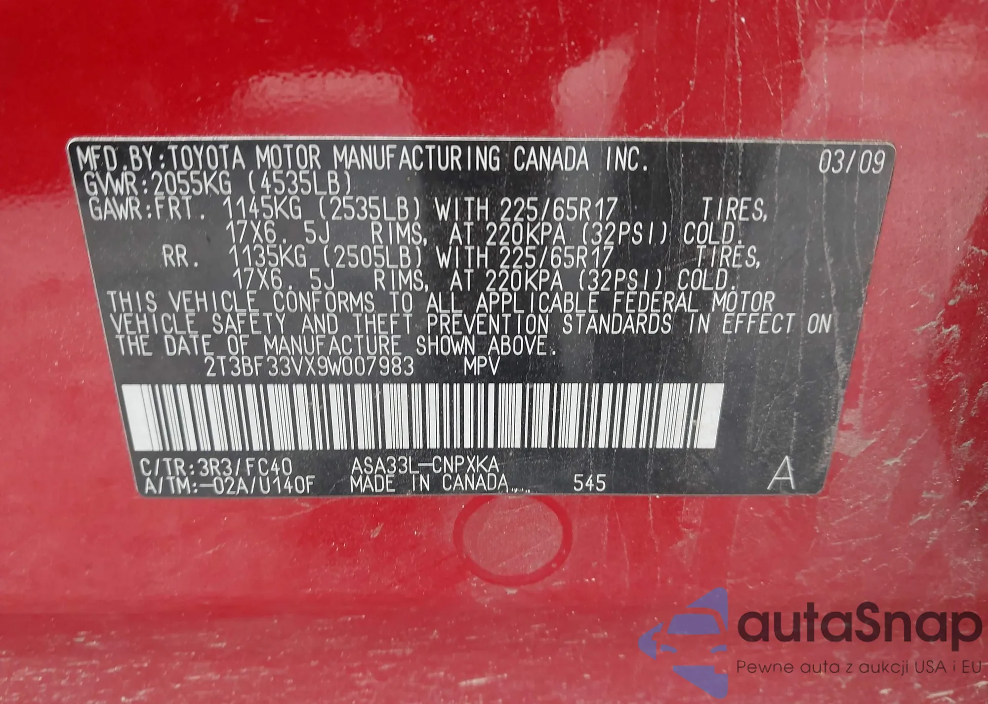 • VIN 2T3BF33VX9W007983