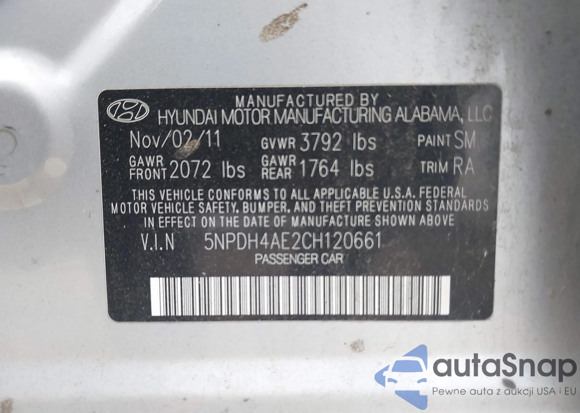 • VIN 5NPDH4AE2CH120661