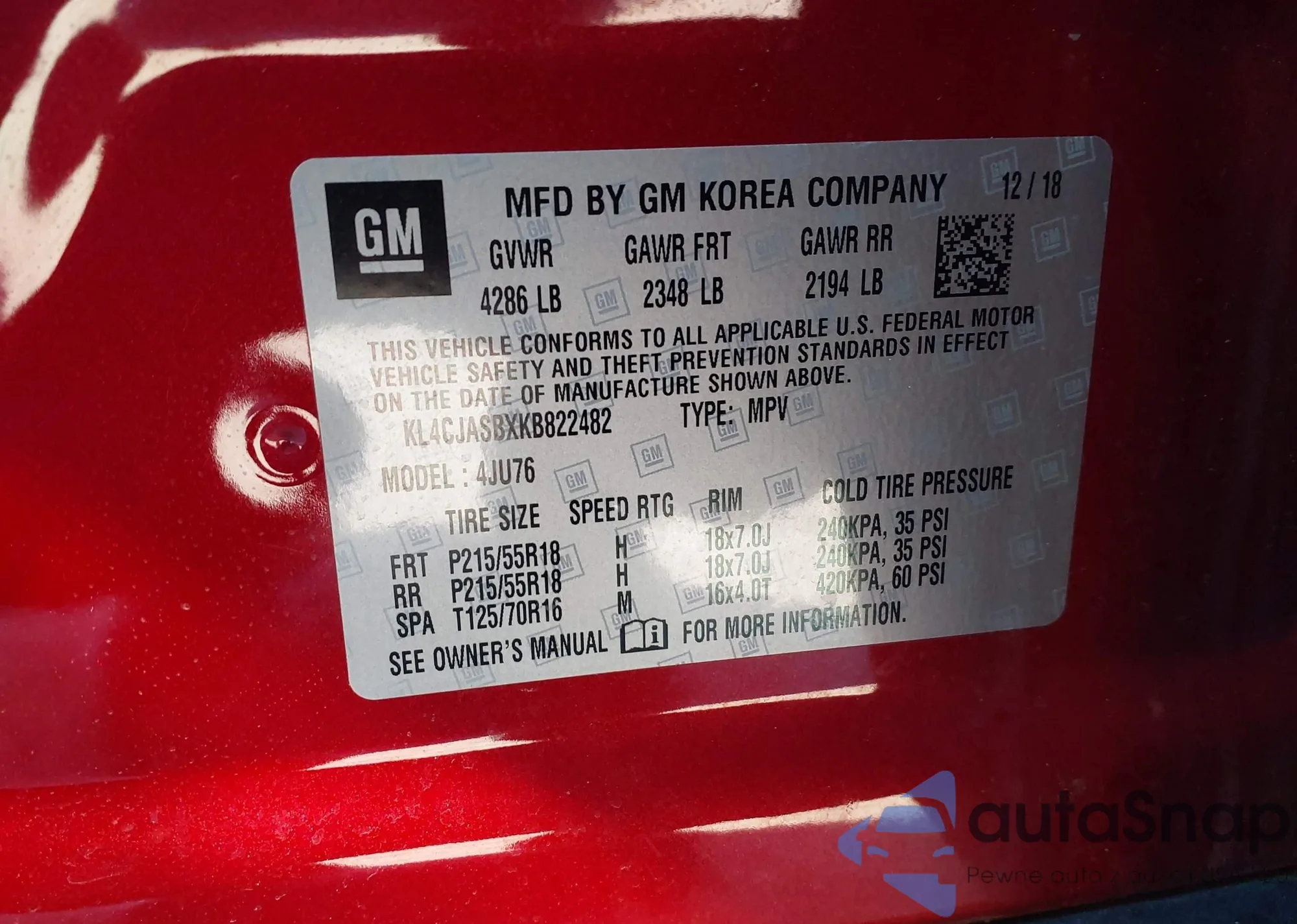 • VIN KL4CJASBXKB822482
