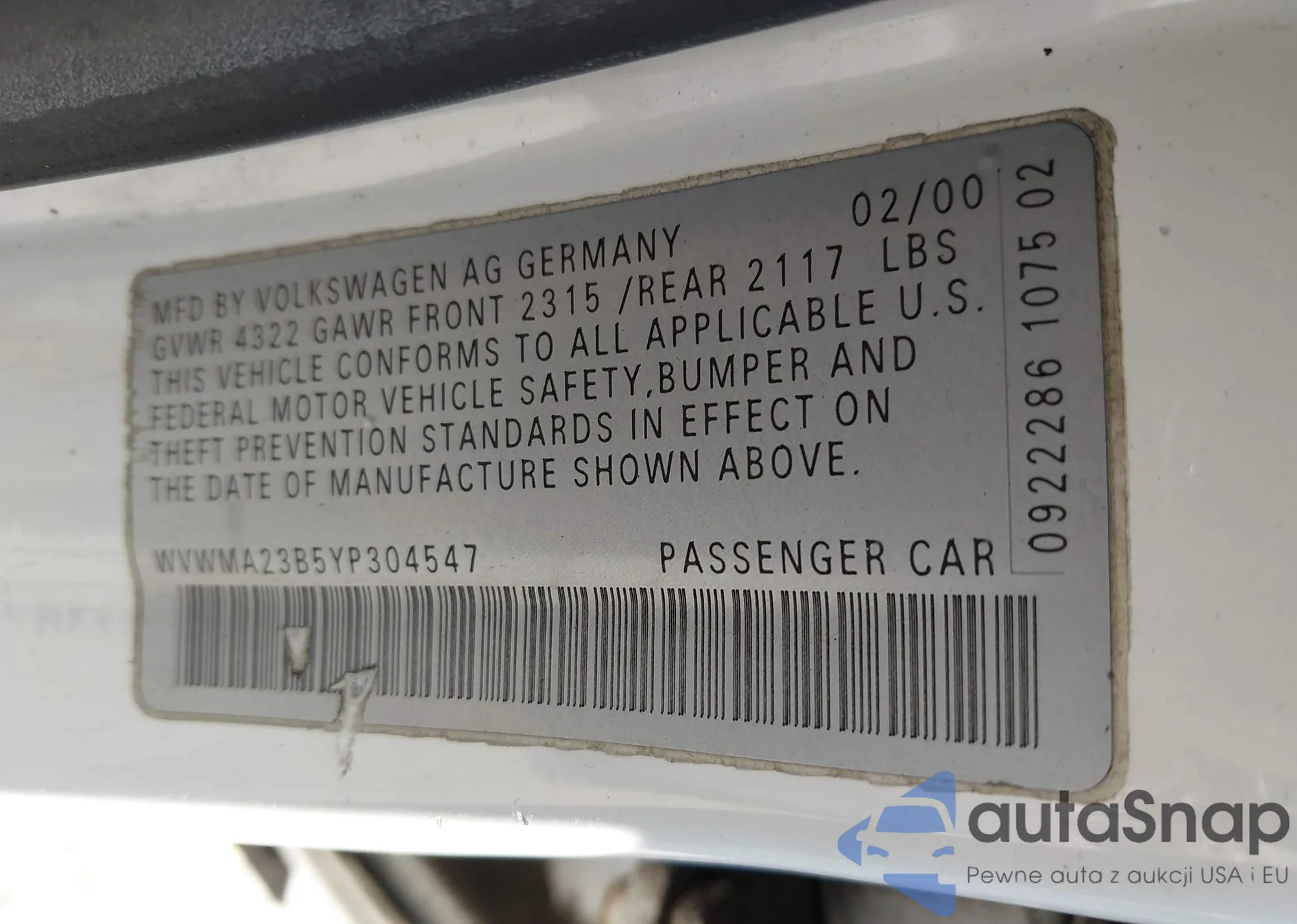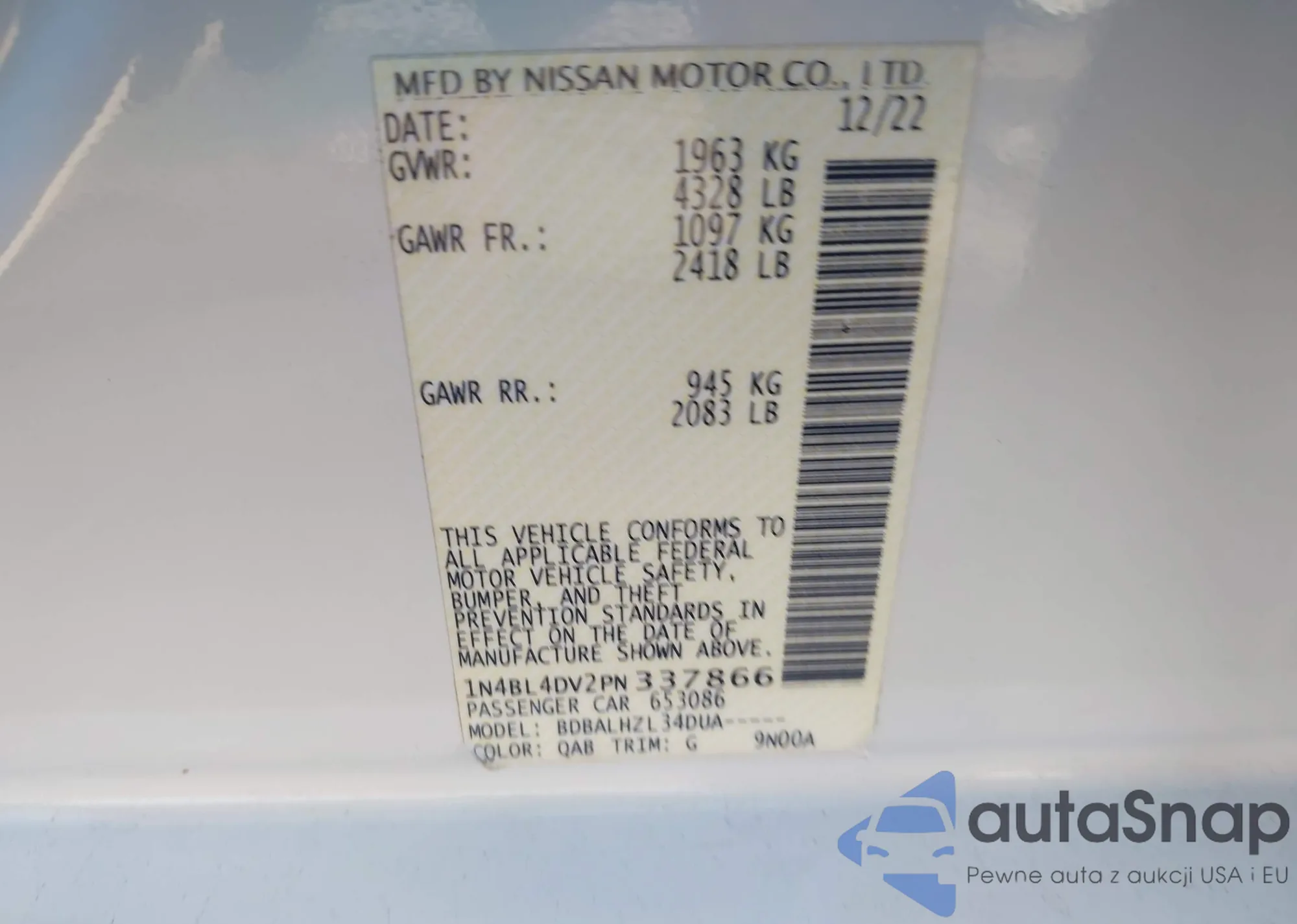 • VIN 3GNAXNEV7NS147103