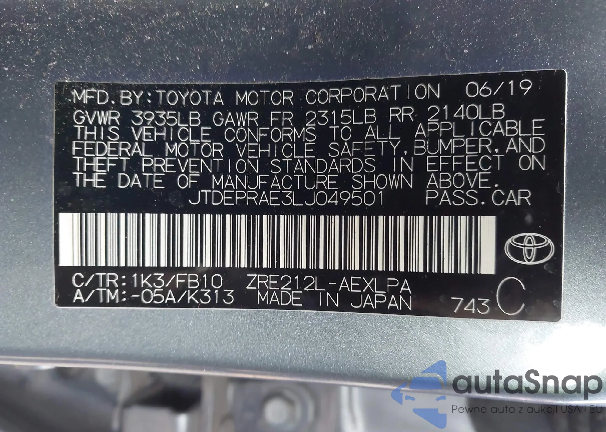 LOT: 43834821 VIN: JTDKN3DU9A1011387