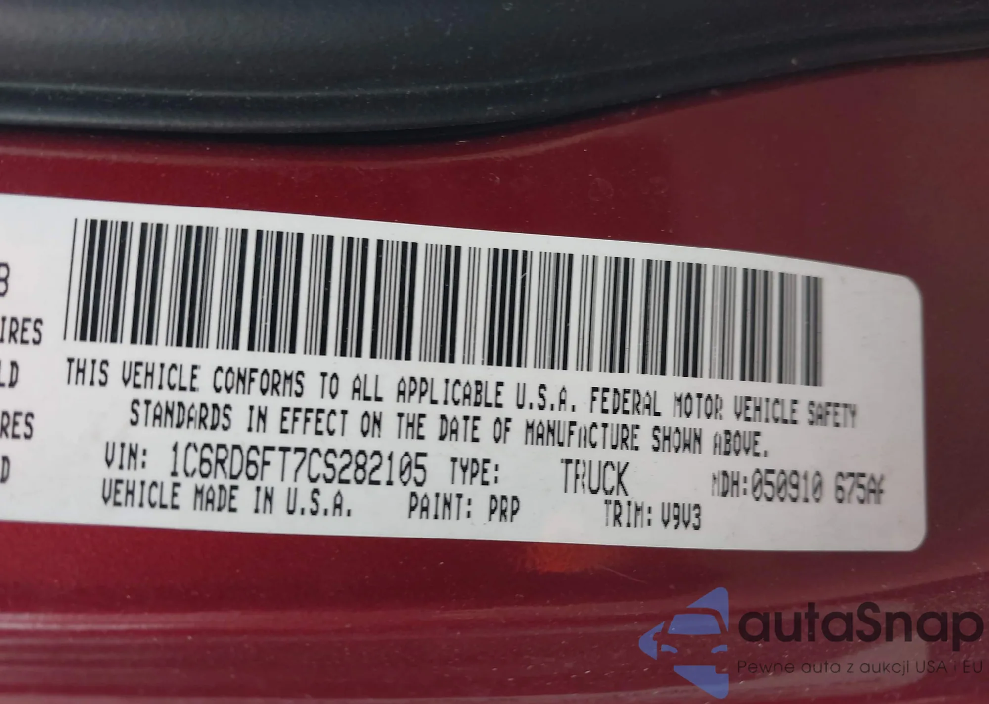 LOT: 43887941 VIN: 1C6RD6FT7CS282105