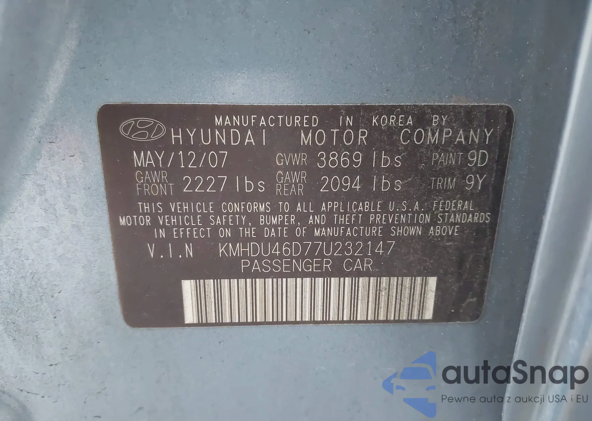 • VIN KMHDU46D77U232147